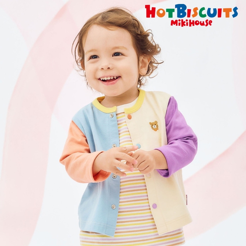 ミキハウス ホットビスケッツの天竺素材のカーディガンです。 ビーンズのワンポイントが胸元にあるシンプルなデザインのカーディガン(軽はおり)が新登場! 品質にこだわったEveryday Seriesはユニセックスでお使いいただけるベーシックなシリーズ。 おでかけはもちろん、通園通学にもおすすめです! カーディガンのなかでは薄手の素材なので、春秋はもちろん夏場の冷房対策や紫外線対策にもぴったりです◎ 丈夫なバインダーネックで首元がよれにくく、 お洗濯を繰り返しても型崩れが少ない仕様です。 [素材感] さらっとした肌触りで通気性がよく、汗をしっかりと吸収し 洗濯しても風合いが変わらず型くずれしにくい丈夫な天竺素材。 ……………………………………… 伸縮性:あり 生地:綿100% 透け感;なし 袖丈:長袖 おすすめ着用シーズン:春夏秋 ……………………………………… 【スタイリング】 白はなんにでも合わせやすく、マルチカラーは一枚でも主役になるカラーリング! シンプルなボトムとの相性ばっちりです◎ ●生地:日本製 ●お名前が書けるネームタグ付き ●紫外線遮蔽率(UVカット)80%以上<マルチ> 《HOT BISCUITS ーホットビスケッツー》 ミキハウスホットビスケッツは、”Good Quality”がキーワードのブランド。 子供たちには毎日ごきげんに、楽しく健やかに 過ごしてほしいから、 お子さまのための良いものづくりを大切にしています。 男の子も女の子も子どもらしく、おしゃれに可愛く着られるアイテムがいっぱい。 赤ちゃんからキッズまでの子供服・ベビー服・ベビー用品等を幅広くご用意しています。 春夏秋冬の季節に合わせた、ご出産祝いやプレゼント、ギフトもおすすめです。