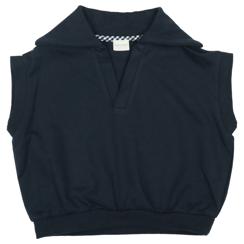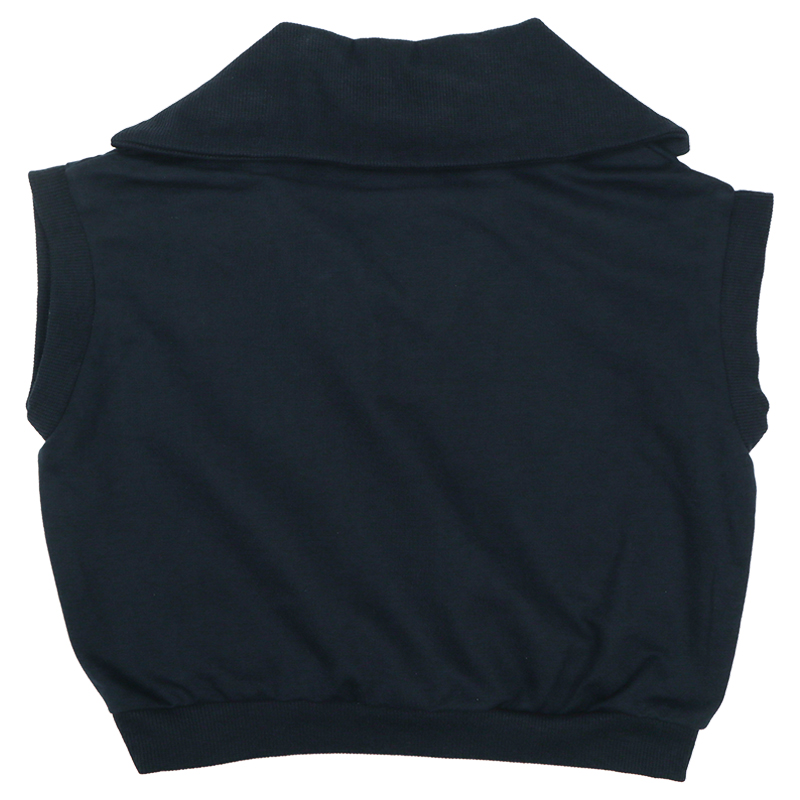 柔らかい薄手の裏毛生地を使用した、季節の変わり目に便利なベスト。セーラーカラータイプの衿がポイントです。ボタンもなく、大き目な衿ぐりなので着用も簡単です。ベーシックなカラー展開で、コーディネートの巾が広がります。名前が書けるお名前タグ付きです。