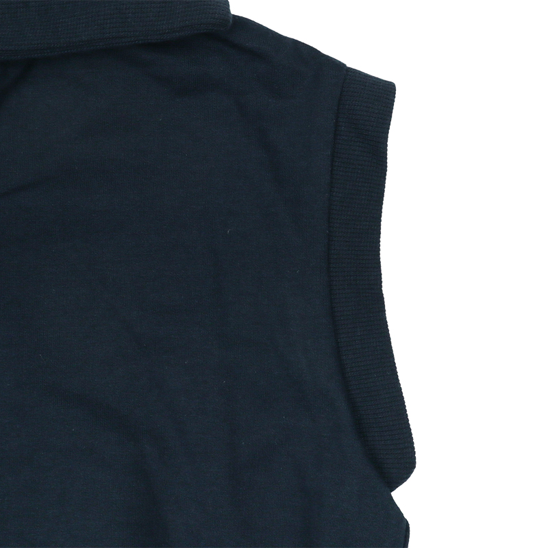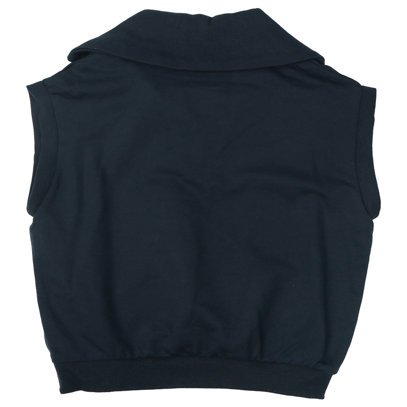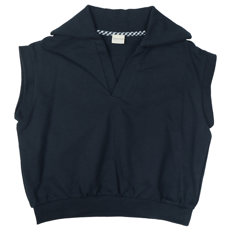 柔らかい薄手の裏毛生地を使用した、季節の変わり目に便利なベスト。セーラーカラータイプの衿がポイントです。ボタンもなく、大き目な衿ぐりなので着用も簡単です。ベーシックなカラー展開で、コーディネートの巾が広がります。名前が書けるお名前タグ付きです。