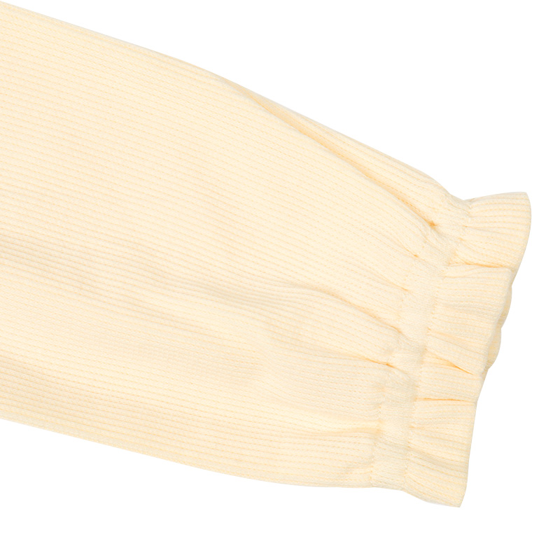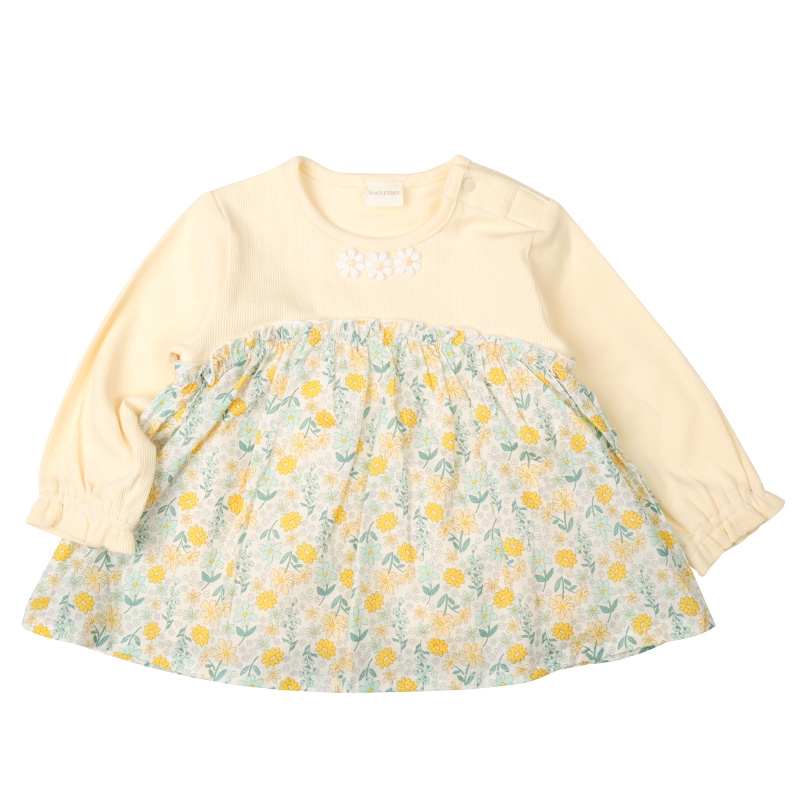 本体:綿98%ポリウレタン2% リブ部分:綿97%ポリウレタン3% 布帛部分:綿100% 【70cm】着丈31胸囲51肩幅20.5袖丈22 【80cm】着丈34胸囲53肩幅22袖丈26 【90cm】着丈37胸囲56肩幅23袖丈30 【95cm】着丈38.5胸囲58肩幅24袖丈32