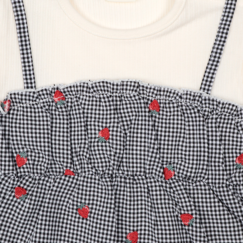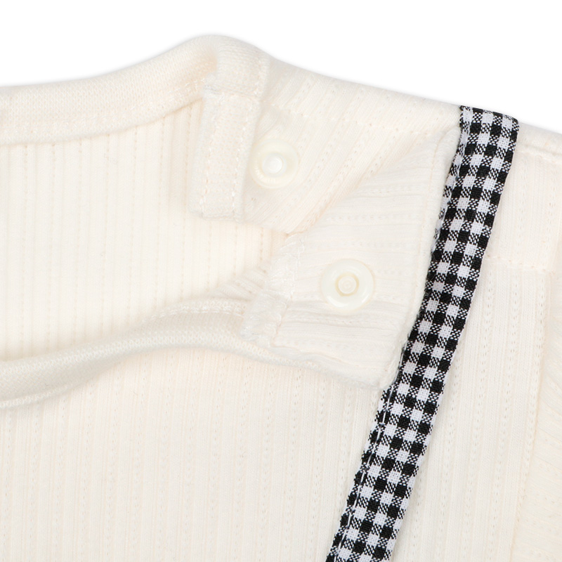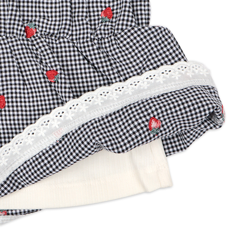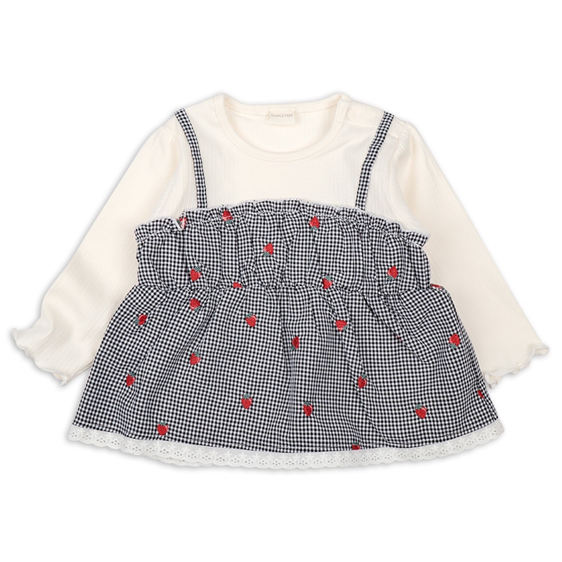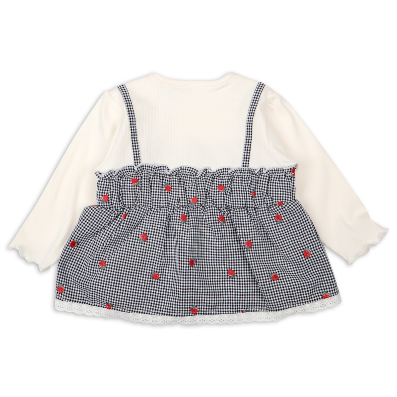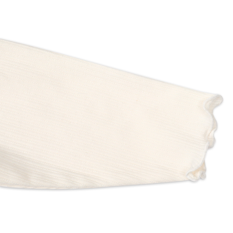 本体:綿56%ポリエステル37%ポリウレタン7% リブ部分:綿57%ポリエステル40%ポリウレタン3% 布帛部分:綿51%ポリエステル49% レース部分:綿100% 【80cm】着丈34胸囲56肩幅21.5袖丈26 【90cm】着丈37胸囲58肩幅23袖丈30 【95cm】着丈38.5胸囲60肩幅24袖丈32