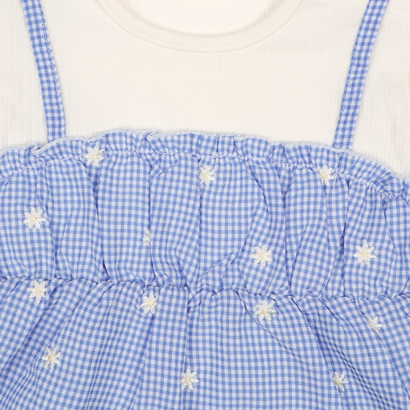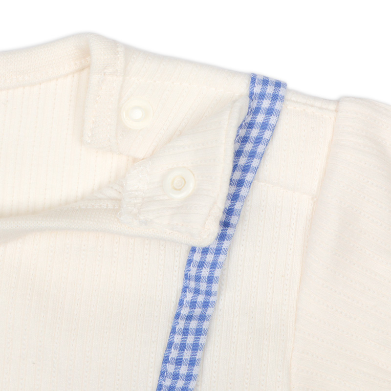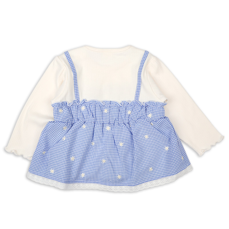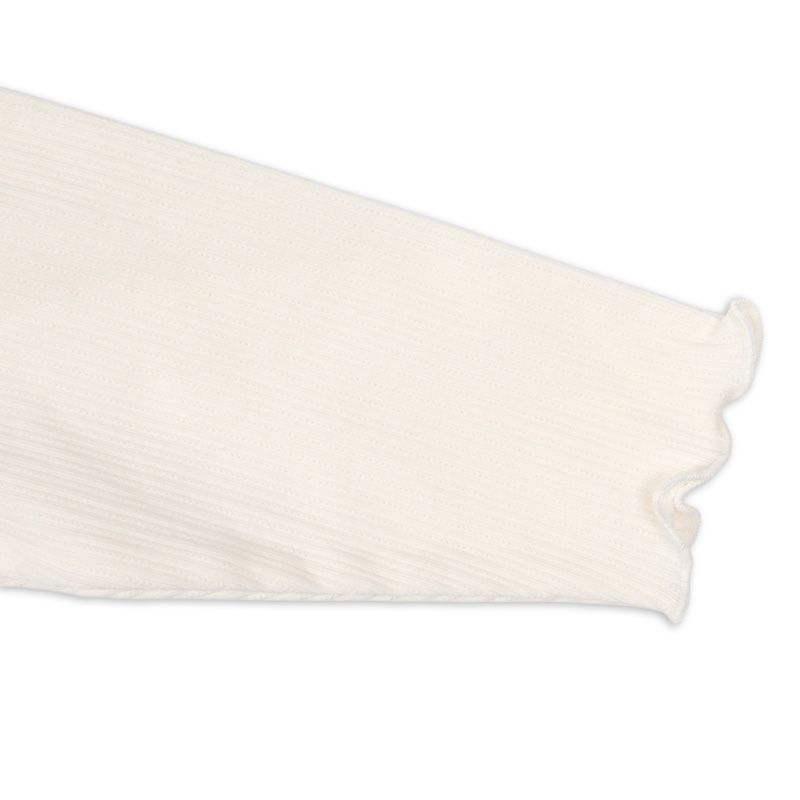 本体:綿56%ポリエステル37%ポリウレタン7% リブ部分:綿57%ポリエステル40%ポリウレタン3% 布帛部分:綿51%ポリエステル49% レース部分:綿100% 【80cm】着丈34胸囲56肩幅21.5袖丈26 【90cm】着丈37胸囲58肩幅23袖丈30 【95cm】着丈38.5胸囲60肩幅24袖丈32