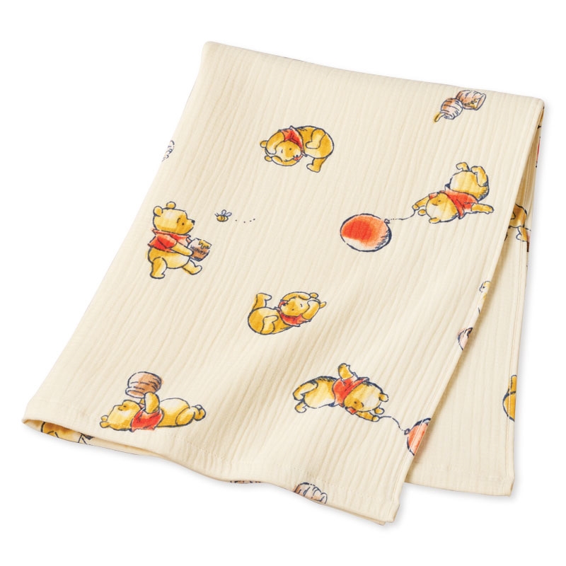 ●素材:綿100% ●商品サイズ(約・cm):70×100 ※お取り扱いのご注意 ・生地の特性上、洗濯により縮みが発生することがあります。 ・色落ちする場合があるので、他のものと一緒に洗わないでください。 ・製品の特性上、多少毛羽落ちするので洗濯ネットとくず取りネットを併用いただくことをお勧めします。 ・つけ置きを避け、洗濯後はすぐに形を整えて干してください。 ・生成及び淡色のものは蛍光増白剤の入っていない洗剤をご使用ください。 ・柔軟剤を使用すると、毛羽落ちしやすくなるので、初め数回の洗濯にはご使用をお避けください。 ・ガーゼ素材を使用している為、鋭利なものにひっかかると糸が飛び出すおそれがあるのでご注意ください。 (C) DISNEY Based on the ”Winnie the Pooh” works by A.A.Milne and E.H.Shepard.