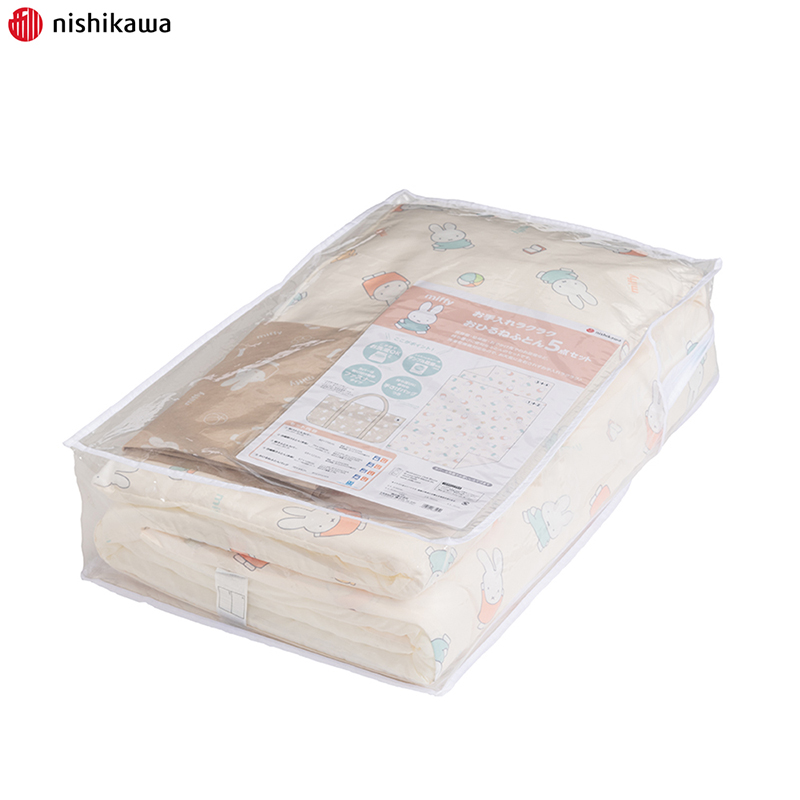 ●素材: [合繊掛けふとん(本体)](ふとんがわ)ポリエステル100% (詰めもの)ポリエステル100% [合繊敷きふとん(本体)](ふとんがわ)ポリエステル100% (詰めもの)ポリエステル100% [掛けふとんカバー](柄面)ポリエステル100% (無地調面)ポリエステル65%・綿35% [敷きふとんカバー](柄面)ポリエステル100% (無地調面)ポリエステル65%・綿35% [おひるねふとんバッグ] ポリエステル100% ●商品サイズ(約・cm・kg): [合繊掛けふとん(本体)]79×109、詰めもの重量:0.25 [合繊敷きふとん(本体)]67×120、詰めもの重量:0.5 [掛けふとんカバー]80×110(ファスナータイプ) [敷きふとんカバー]69×122(ファスナータイプ) [おひるねふとんバッグ]70×44 ●お手入れ: [合繊掛けふとん(本体)]洗濯機OK(ネット使用)・乾燥機OK [合繊敷きふとん(本体)]洗濯機OK(ネット使用)・乾燥機OK [掛けふとんカバー]洗濯機OK・乾燥機OK [敷きふとんカバー]洗濯機OK・乾燥機OK [おひるねふとんバッグ]手洗いOK(洗濯機でのお洗濯はお避けください) ●取扱い方法: [掛け・敷きふとん(本体)] ・使用洗濯機の取扱説明書に従う ・高水位で単独で洗う ・洗濯ネット使用 [掛け・敷きふとんカバー] ・使用洗濯機の取扱説明書に従う ・ファスナーは閉じて洗う ・形を整えて干す ・付属部分アイロン禁止 [おひるねふとんバッグ] ・アイロンの熱に耐えられない為、 アイロン圧着シール(名札シール)は付けられません。 ・洗濯機でのお洗濯はお避けください。 ●洗濯機の機種や容量によっては洗えない場合があります。 洗濯の際は、使用洗濯機の取扱説明書に従い、 必ず洗濯ネットまたは洗濯キャップをご使用ください。 ●ご使用上の注意事項: 1.この商品は、あくまでもお昼寝用としてのおふとんですので、長時間の睡眠には適しておりません。 2.うつぶせ寝でのご使用はお避けください。 ※製品に表示されている方法でお取扱いください。 (C)Mercis bv