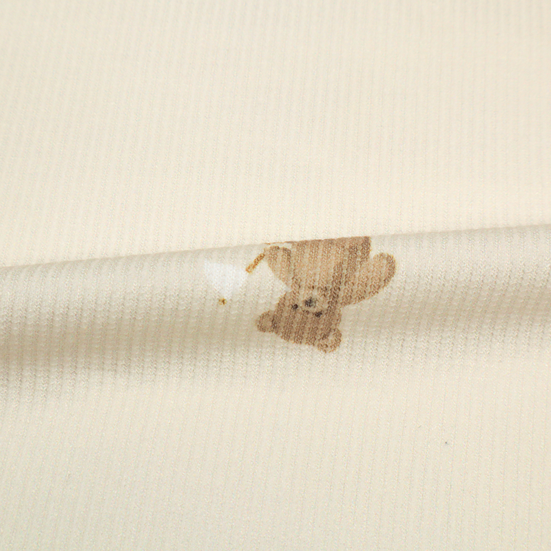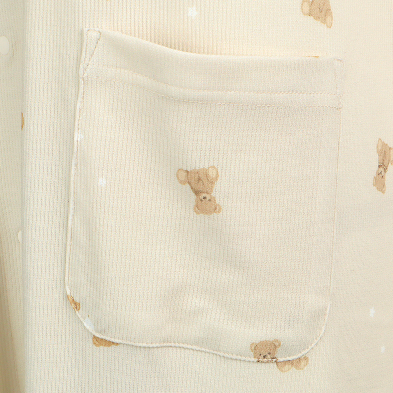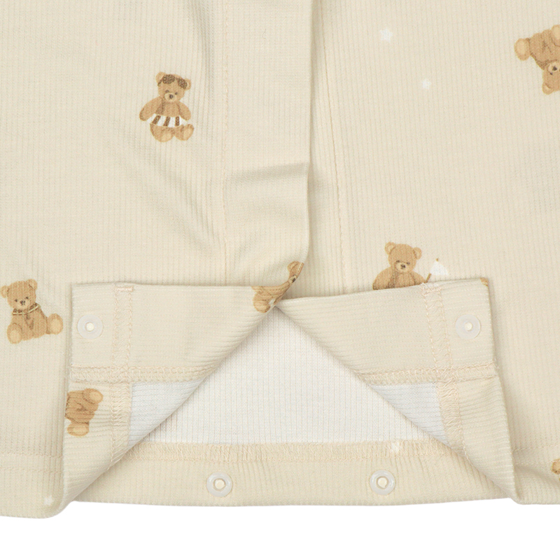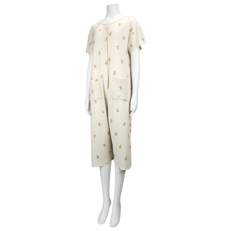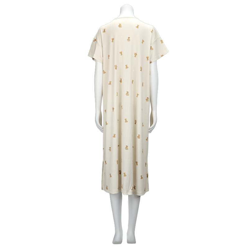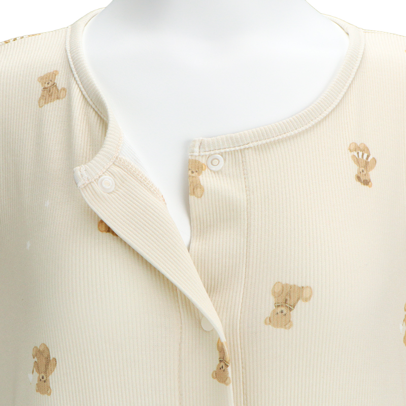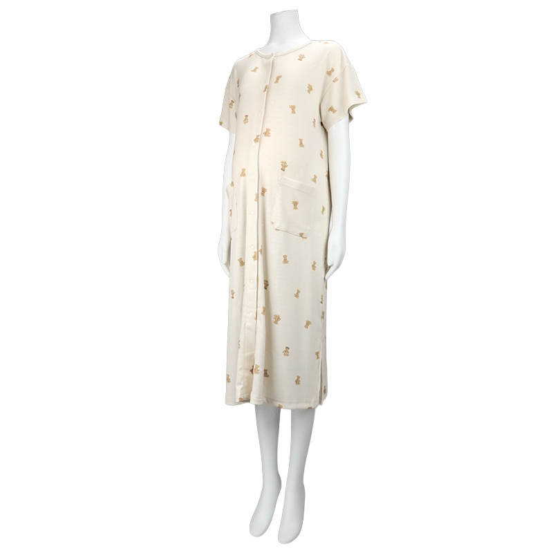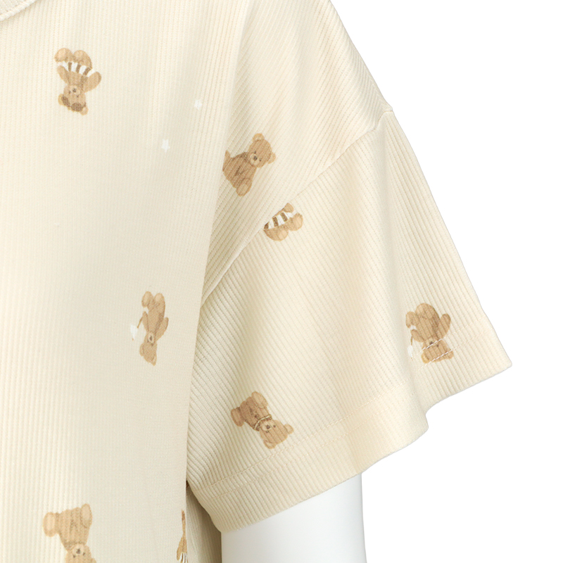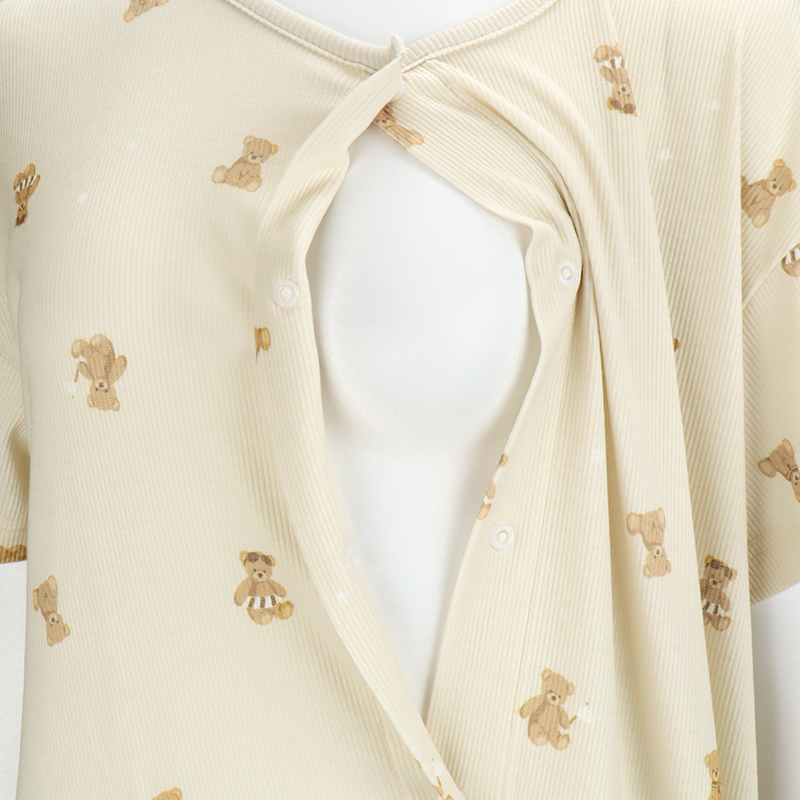 [授乳仕様]半袖涼やかリブワンピース 全開スナップ マリンベア ベージュ