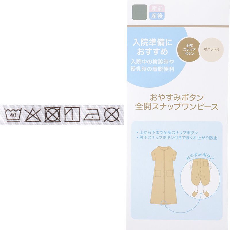 上から下まで全部スナップボタンなので、入院中の検診や帝王切開の時にも着脱簡単。