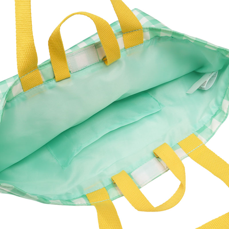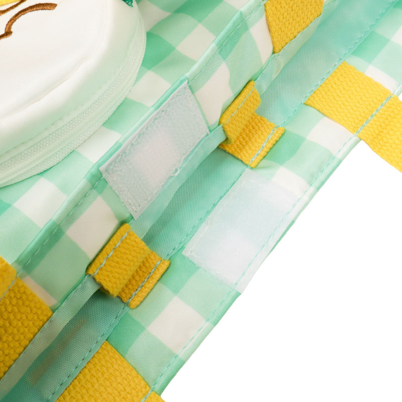 ワンワンのお顔がかわいらしく、アイキャッチにもなるレッスンバッグです。 ギンガムチェック柄と持ち手の配色がとってもおしゃれ。 レッスンバッグは保育園や幼稚園の入園用や、絵本バッグやお稽古バッグとして幅広く使えます。 また、シューズバッグと同柄なので、入園したばかりのお子様も自分の持ち物と認識しやすくなり、新しい生活に安心感が出てきます。
