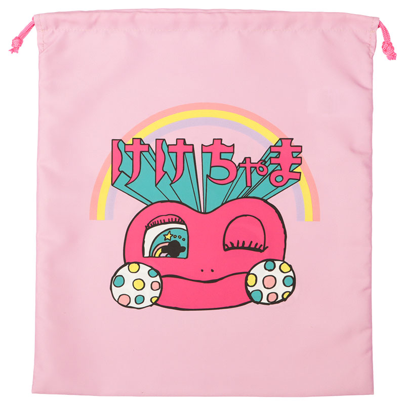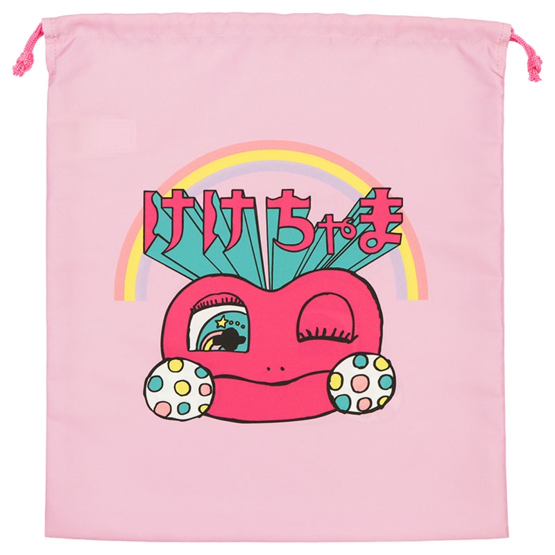 けけちゃまの総柄がかわいらしい巾着です。 上靴入れや体操服・エプロンなど、幅広い用途でお使いいただけます。 同じ柄の小さい巾着と揃えていただけます。