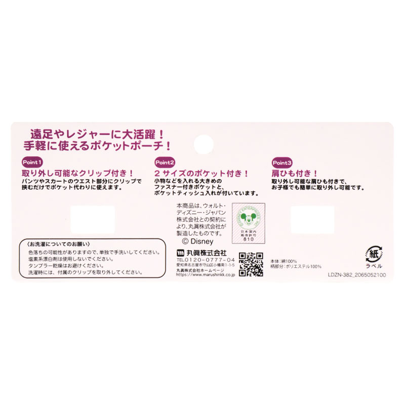 ディズニープリンセスの可愛らしいポケットポーチです。パンツやスカートのウエスト部分にクリップで挟むだけでポケット代わりに使えます。紐もついてるので肩掛けも可能です。中にはそのまま出せるポケットティッシュケース付きです。