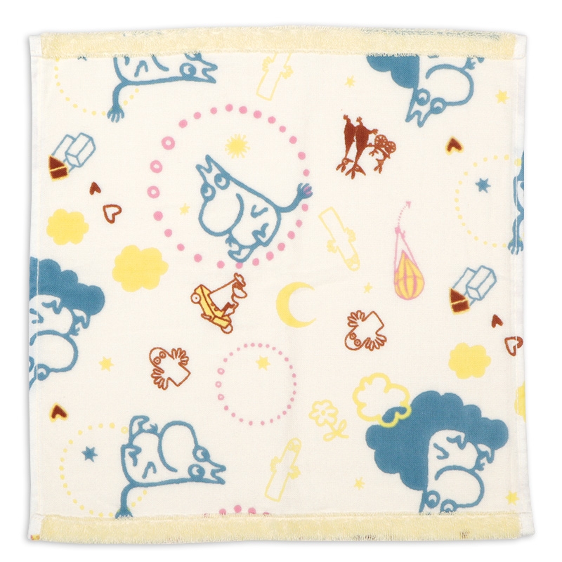 赤ちゃんのムーミンが空で遊んでいるデザインが可愛らしいです。柔らかな肌触りのガーゼのハンドタオルです。ガーゼ生地なので赤ちゃんの肌にも優しく、乾きも良いのでお洗濯もラクチンです。