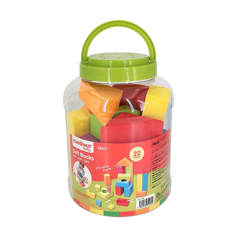やわらか素材の安心おもちゃ! 柔らかい素材で出来たブロック。 誤って落としたり、投げたりしても床や家具、 もちろんお子様を傷つける事は無いので、安心して遊んで頂けます。