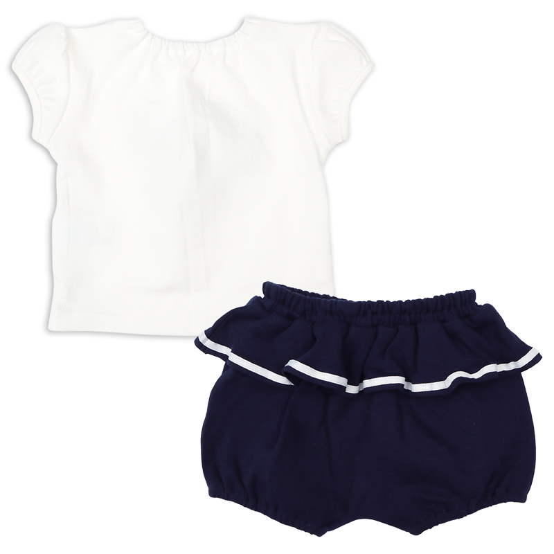 ●組成表示 本体 綿100% リブ 綿95%/ポリウレタン5% ●サイズ(約・cm) 70 ・・・ Tシャツ 総丈:30,身幅:26,肩幅:24,袖丈:10.5 パンツ 脇丈:20.5,ウエスト回り:38 80 ・・・ Tシャツ 総丈:33,身幅:27,肩幅:25,袖丈:11 パンツ 脇丈:21.5,ウエスト回り:40 90 ・・・ Tシャツ 総丈:36,身幅:28,肩幅:26,袖丈:11.5 パンツ 脇丈:22.5,ウエスト回り:41