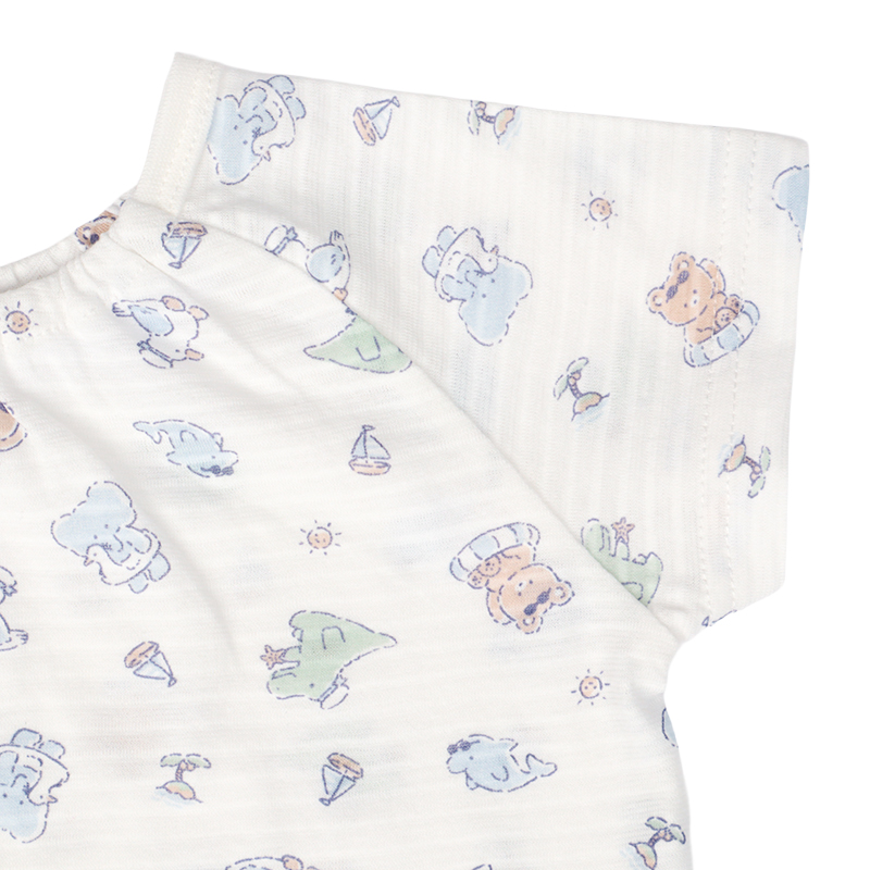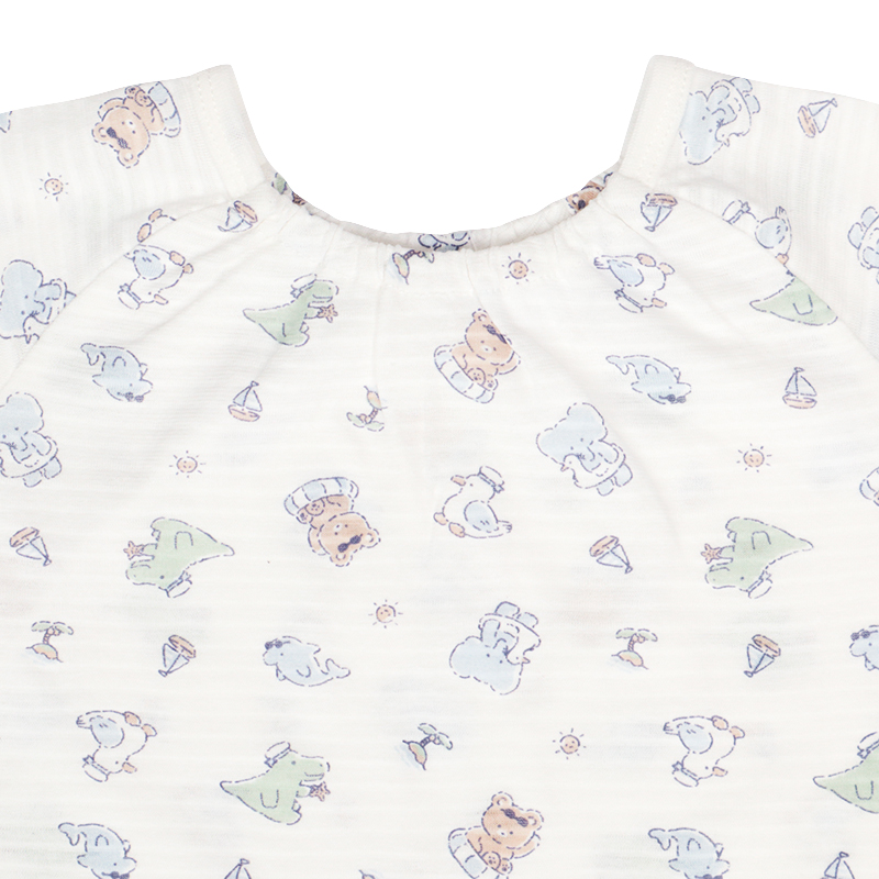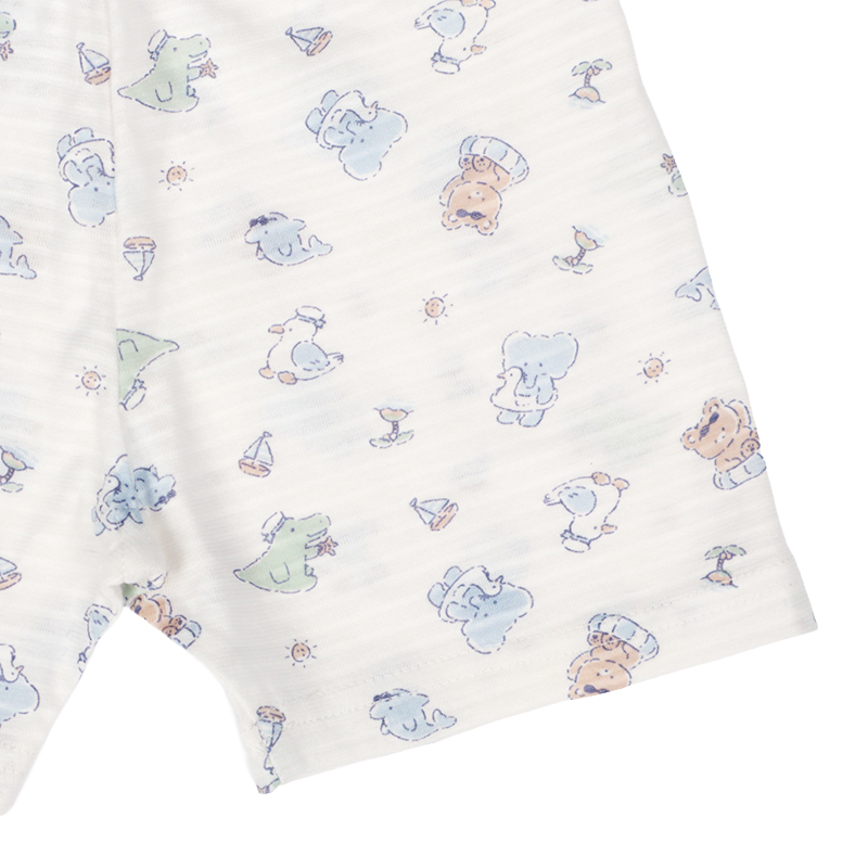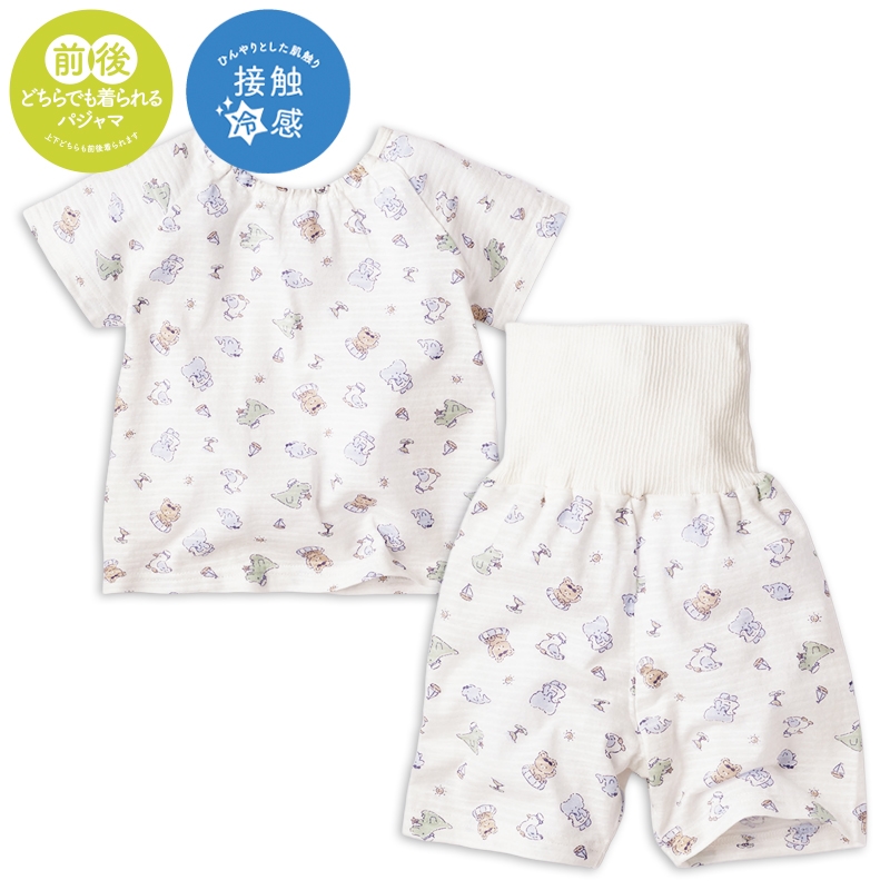 ●組成表示 本体 綿 100% 附属編地 綿 95%、ポリウレタン 5% ●サイズ(約・cm) 70cm ・・・ 着丈:34・身幅:32・裄丈:19・パンツ丈:24.5 80cm ・・・ 着丈:37・身幅:33・裄丈:21・パンツ丈:27 90cm ・・・ 着丈:40・身幅:34・裄丈:23・パンツ丈:31 95cm ・・・ 着丈:42・身幅:35・裄丈:25・パンツ丈:33.5 ※パンツ丈は腹巻き部分を除く