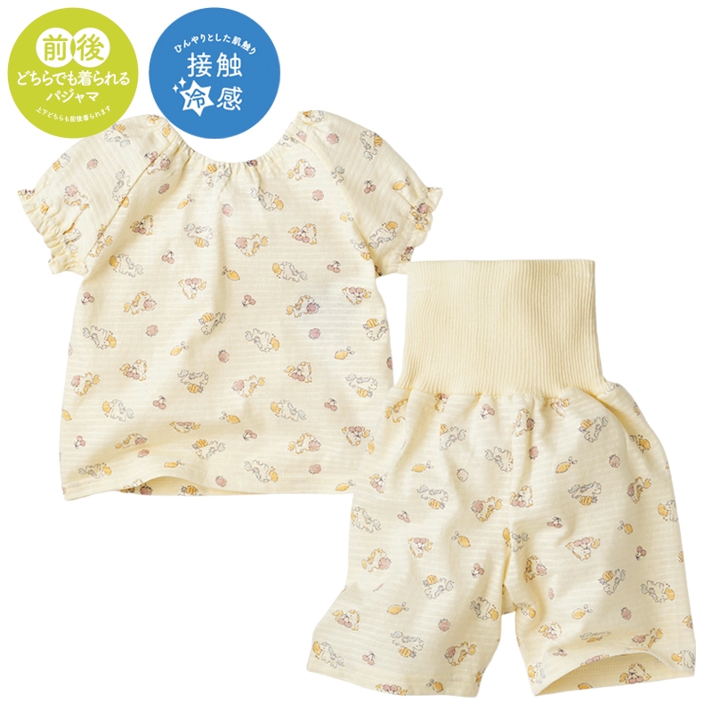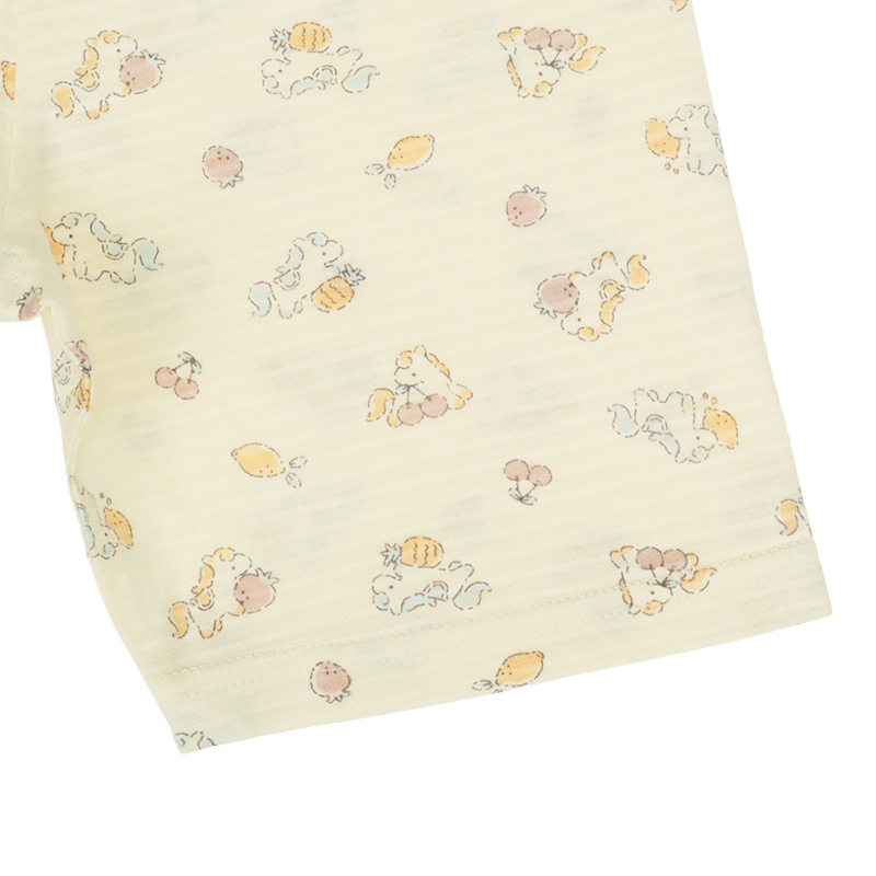 ●組成表示 本体 綿 100% 附属編地 綿 95%、ポリウレタン 5% ●サイズ(約・cm) 70cm ・・・ 着丈:34・身幅:32・裄丈:19・パンツ丈:24.5 80cm ・・・ 着丈:37・身幅:33・裄丈:21・パンツ丈:27 90cm ・・・ 着丈:40・身幅:34・裄丈:23・パンツ丈:31 95cm ・・・ 着丈:42・身幅:35・裄丈:25・パンツ丈:33.5 ※パンツ丈は腹巻き部分を除く