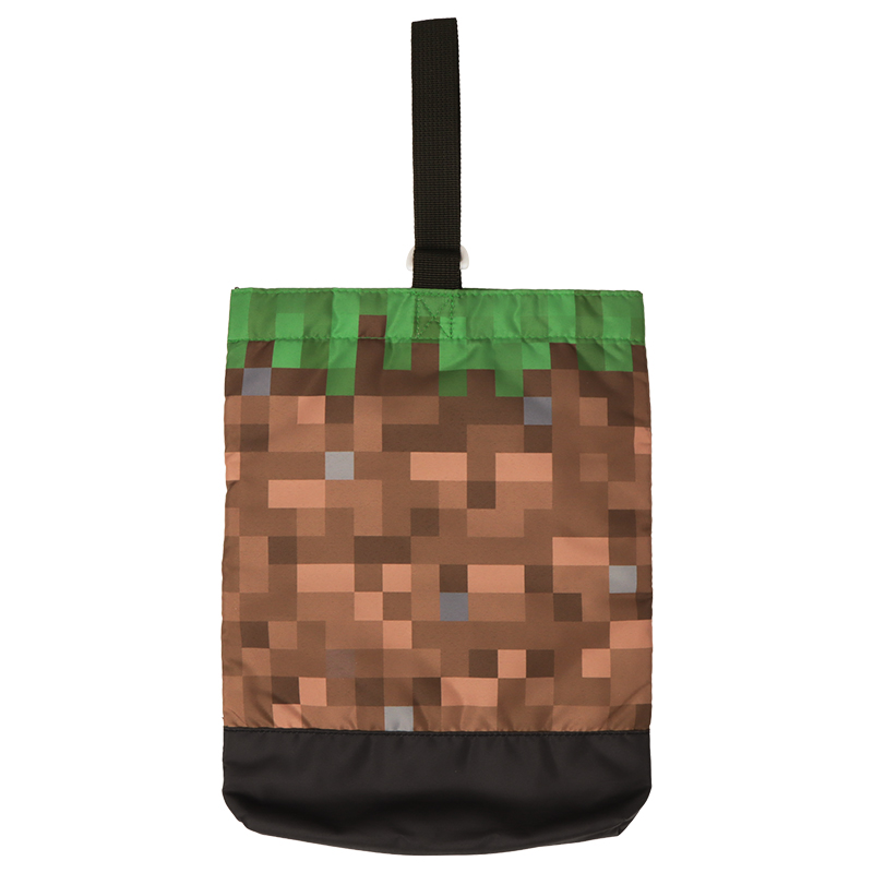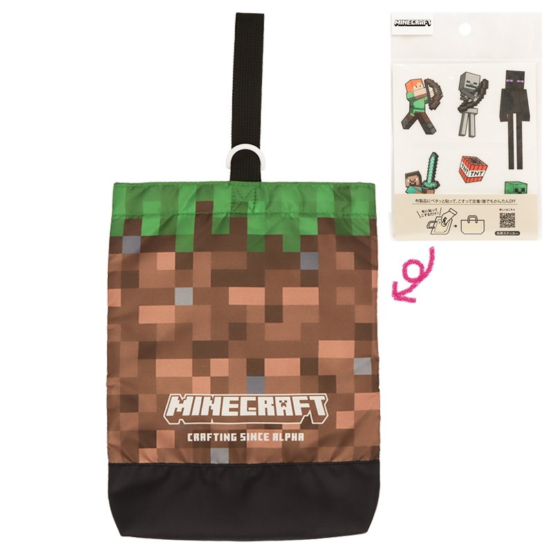 MINECRAFTのシューズケース。中綿入りで布に貼れるシールが付いているので好きな所に貼って自分だけのオリジナルのシューズケースが制作可能です。