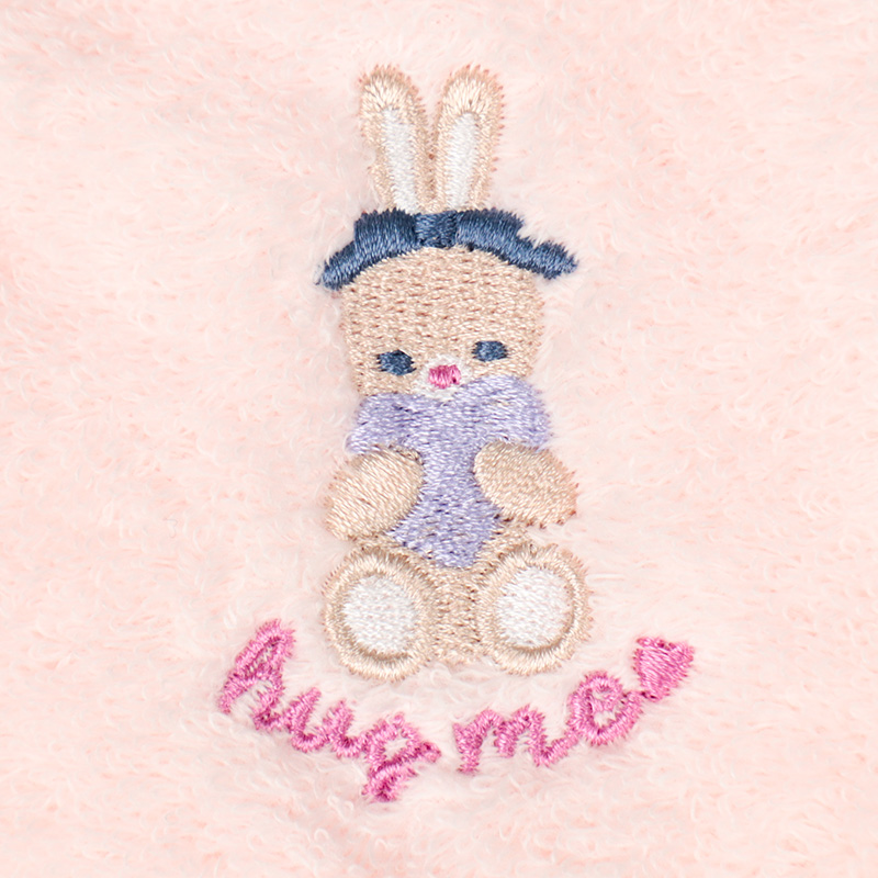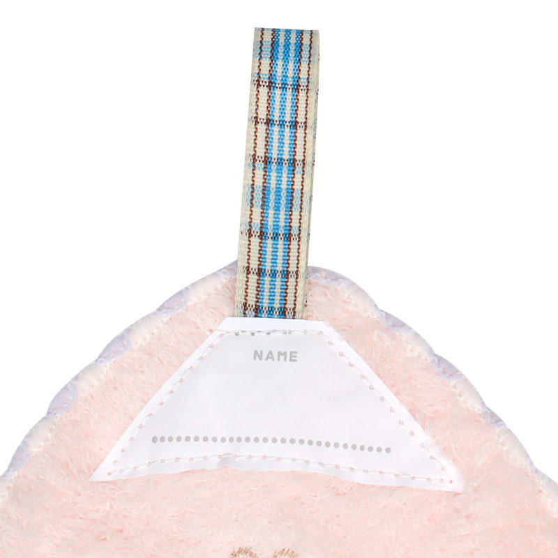 無撚糸を使用した、ふわふわの肌触りのループタオルです。 とても柔らかく赤ちゃんにも優しく、吸水性抜群です。ネームタグ付き。