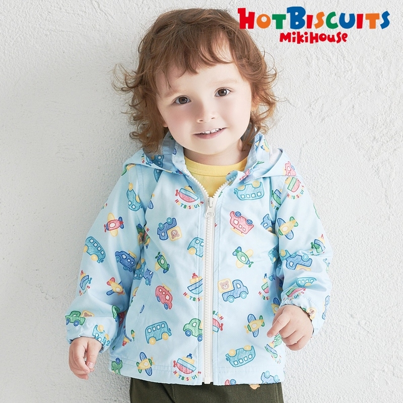 ミキハウス ホットビスケッツの乗り物総柄ウィンドブレーカー。 人気のウインドブレーカーから新作が登場! クレヨンタッチの乗り物がかわいいデザイン。 日中と朝晩の気温差で体温調節が難しい季節の変わり目に、 Tシャツやシャツの上からさっと羽織れるので一枚持っておくと安心です。 かさばらないので持ち運びもしやすい◎ [素材感] 表地は光沢があり滑らかで保温性に優れた丈夫なポリエステル素材 裏地はメッシュ素材でウインドブレーカー特有のごわつきがなく、しなやかでやわらかい素材 ……………………………………… 裏地:有り(メッシュ) ポケット:有り 紫外線遮蔽率:90%以上 おすすめ着用シーズン:通年 ……………………………………… ●はっ水素材 ●フードは取り外しできます ●首もとにループ付きでフックにかけられるようになっています ●ファスナーの上部が肌に直接あたらないようにファスナーガード付き ●ご自宅でお洗濯していただけます 《HOT BISCUITS ーホットビスケッツー》 ミキハウスホットビスケッツは、”Good Quality”がキーワードのブランド。 子どもたちには毎日ごきげんに、楽しく健やかに 過ごしてほしいから、 お子さまのための良いものづくりを大切にしています。 男の子も女の子も子どもらしく、おしゃれに可愛く着られるアイテムがいっぱい。 赤ちゃんからキッズまでの子ども服・ベビー服・ベビー用品等を幅広くご用意しています。 春夏秋冬の季節に合わせた、ご出産祝いやプレゼント、ギフトもおすすめです。