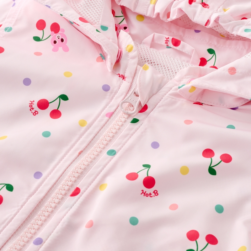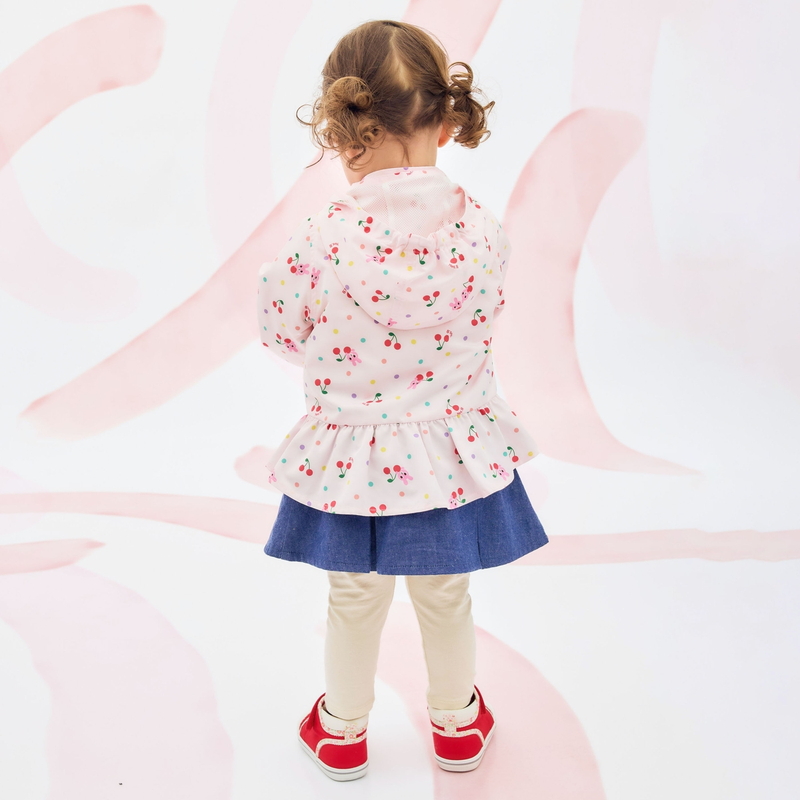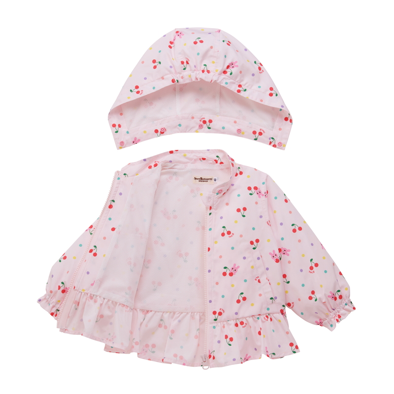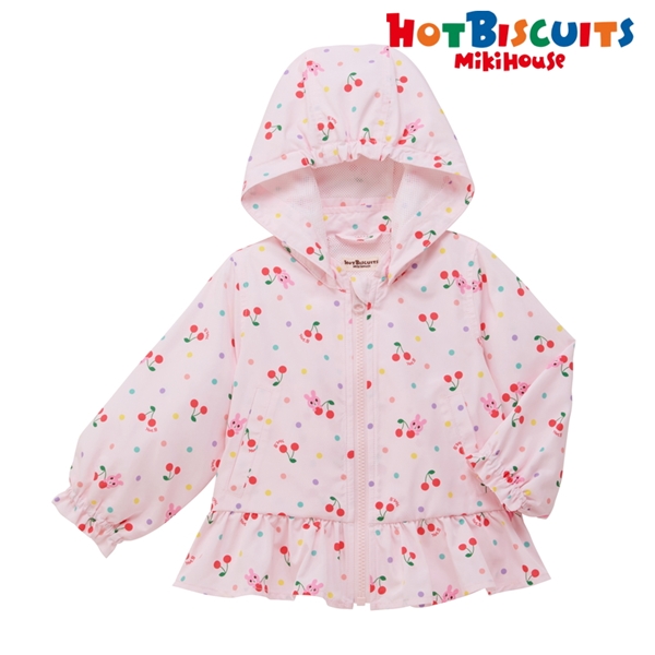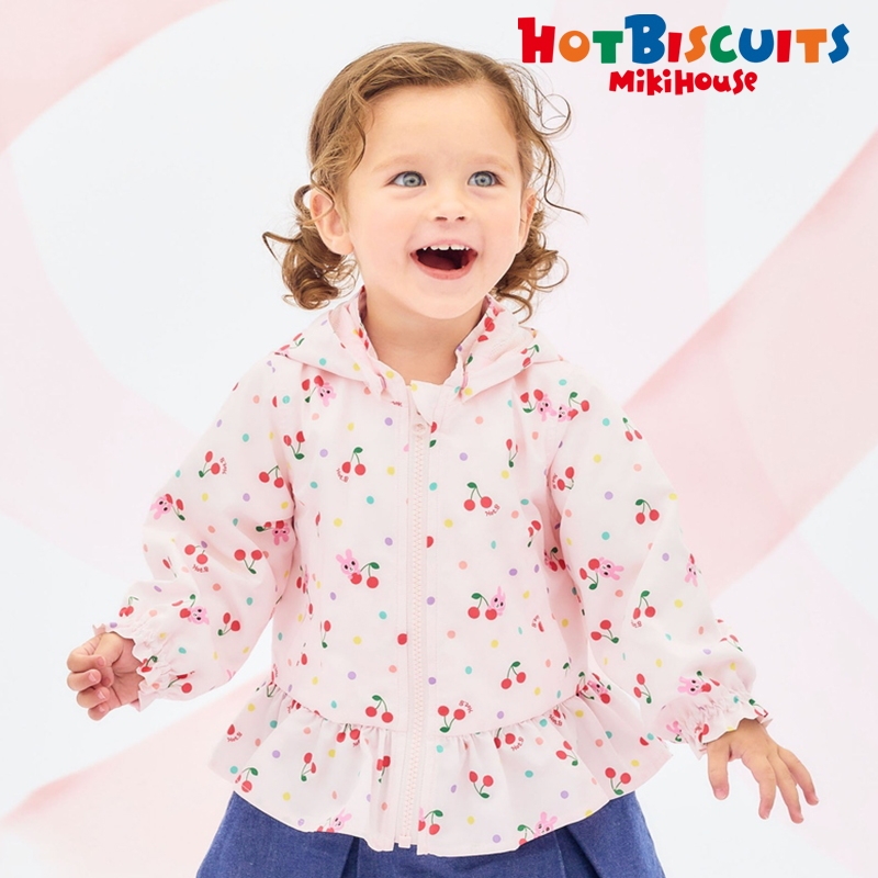 ミキハウス ホットビスケッツの総柄ウィンドブレーカー。 人気のウインドブレーカーから新作が登場! さくらんぼ柄と裾のフリルがかわいいデザイン。 日中と朝晩の気温差で体温調節が難しい季節の変わり目に、 Tシャツやシャツの上からさっと羽織れるので一枚持っておくと安心です。 かさばらないので持ち運びもしやすい◎ [素材感] 表地は光沢があり滑らかで保温性に優れた丈夫なポリエステル素材 裏地はメッシュ素材でウインドブレーカー特有のごわつきがなく、しなやかでやわらかい素材 ……………………………………… 裏地:有り(メッシュ) ポケット:有り 紫外線遮蔽率:80%以上 おすすめ着用シーズン:通年 ……………………………………… ●はっ水素材 ●フードは取り外しできます ●首もとにループ付きでフックにかけられるようになっています ●ファスナーの上部が肌に直接あたらないようにファスナーガード付き ●ご自宅でお洗濯していただけます 《HOT BISCUITS ーホットビスケッツー》 ミキハウスホットビスケッツは、”Good Quality”がキーワードのブランド。 子どもたちには毎日ごきげんに、楽しく健やかに 過ごしてほしいから、 お子さまのための良いものづくりを大切にしています。 男の子も女の子も子どもらしく、おしゃれに可愛く着られるアイテムがいっぱい。 赤ちゃんからキッズまでの子ども服・ベビー服・ベビー用品等を幅広くご用意しています。 春夏秋冬の季節に合わせた、ご出産祝いやプレゼント、ギフトもおすすめです。