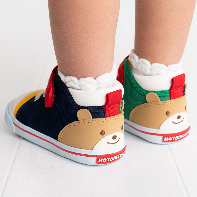 ミキハウス ホットビスケッツの顔ドンシリーズのセカンド ベビーシューズ。
