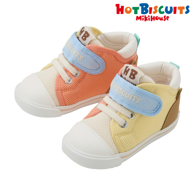 ミキハウス ホットビスケッツの顔ドンシリーズのセカンド ベビーシューズ。