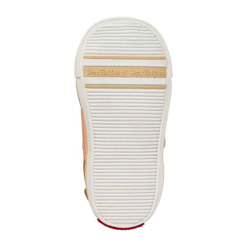 かかとのお顔がとってもかわいく、カラフルなカラーリングがお子さまの足元を彩ります。