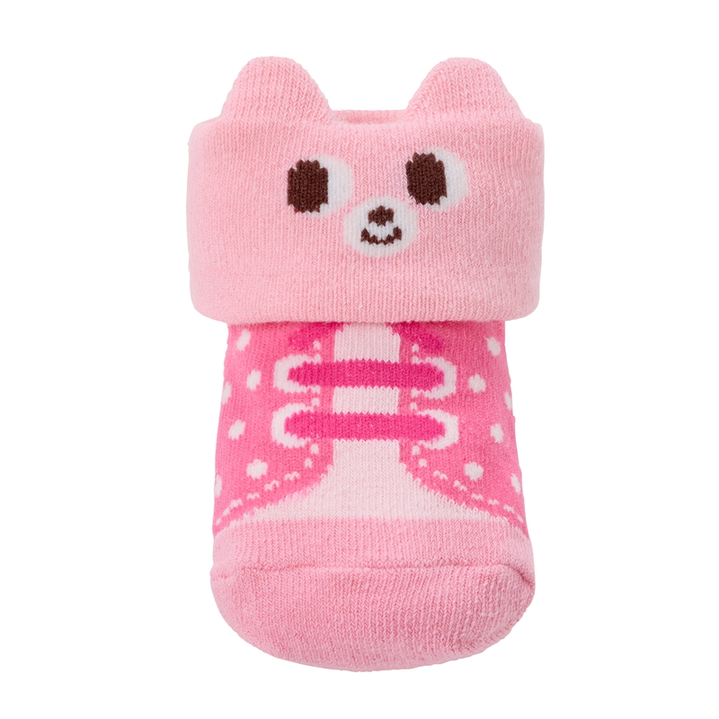 ミキハウス ホットビスケッツのシューズ風ベビーソックス。 折り返しにキャビットのお顔があるスニーカー風のかわいらしいベビーソックスです。 歩く前のベビーちゃんもこれを履けば、シューズデビュー気分! はいはいやたっちの時期の足元がかわいく決まります。 ベビーキャリー(抱っこ紐)やベビーカーからチラっと見える赤ちゃんの足元。 かわいいソックスでおしゃれを楽しんでください♪ 出産お祝いのギフトでウエアとセットにするだけでなく、お土産やお礼などのプチギフトにもおすすめです。 ●立体的な編み方でかかとを自然にホールドしてくれる快適なはき心地のYヒール構造 ●足裏にロゴの簡易すべり止め付き ~サイズの目安~ 9-11cm…6ヶ月~1歳頃 《HOT BISCUITS ーホットビスケッツー》 ミキハウスホットビスケッツは、”Good Quality”がキーワードのブランド。 子どもたちには毎日ごきげんに、楽しく健やかに 過ごしてほしいから、 お子さまのための良いものづくりを大切にしています。 男の子も女の子も子どもらしく、おしゃれに可愛く着られるアイテムがいっぱい。 赤ちゃんからキッズまでの子ども服・ベビー服・ベビー用品等を幅広くご用意しています。 春夏秋冬の季節に合わせた、ご出産祝いやプレゼント、ギフトもおすすめです。