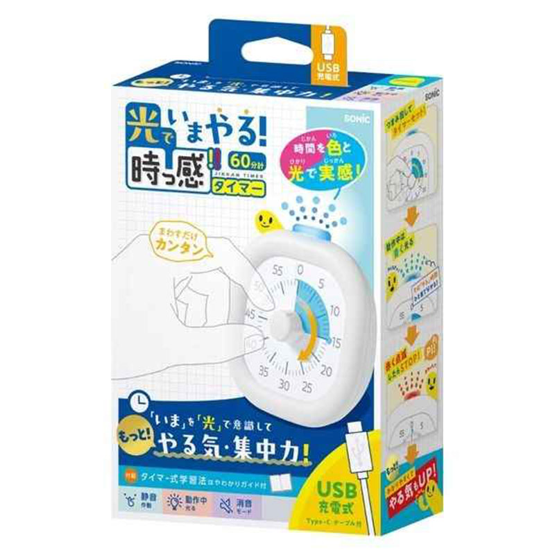 ●本体サイズ(約・mm):W103×D48×H105 ●製品重量:185g] ●設定可能時間:60分 ●専用USBケーブル(Type-C)付き ●タイマー式学習法はやわかりガイドブック付き ※取り扱いはホワイトのみとなっております。