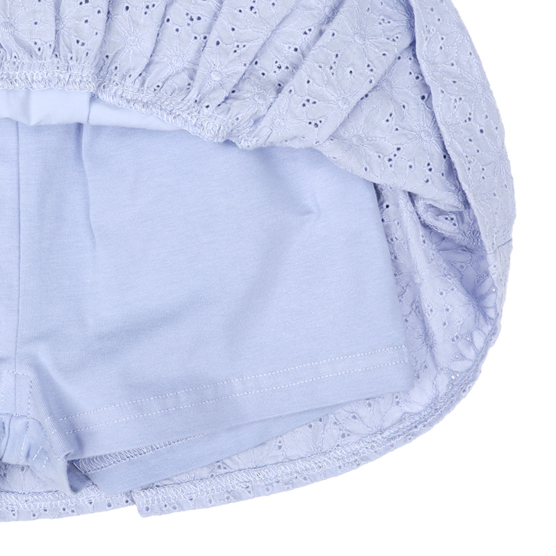 ●素材=本体:綿100% パンツ:綿93%ポリウレタン 7% ●サイズ(約・cm)= 70(スカート総丈21.5・ウエスト18・パンツ総丈20) 80(スカート総丈23・ウエスト19・パンツ総丈21) 90(スカート総丈25・ウエスト20・パンツ総丈23) 95(スカート総丈26・ウエスト20.5・パンツ総丈24)