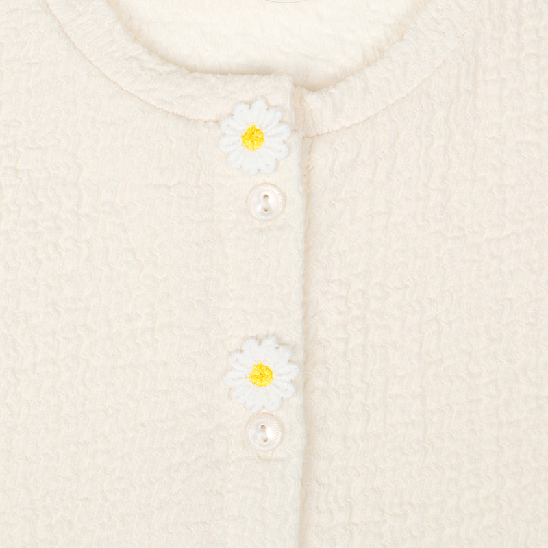 ●素材=ポリエステル99% ポリウレタン1% ●サイズ(約・cm)= 70(身丈30・身幅31・袖丈21.5) 80(身丈32・身幅32・袖丈25) 90(身丈34・身幅34・袖丈28.5) 95(身丈34.5・身幅35・袖丈30)