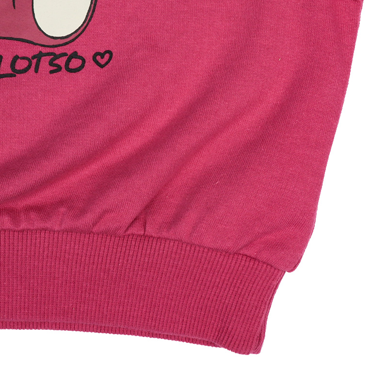 <商品サイズ> 80(身丈34・身幅36・肩幅36・袖丈21・裾幅27) 90(身丈36・身幅37・肩幅37・袖丈24.5・裾幅28) 95(身丈38・身幅38・肩幅38・袖丈26・裾幅29) <素材> 本体 綿100% リブ部分 綿95%ポリウレタン5%