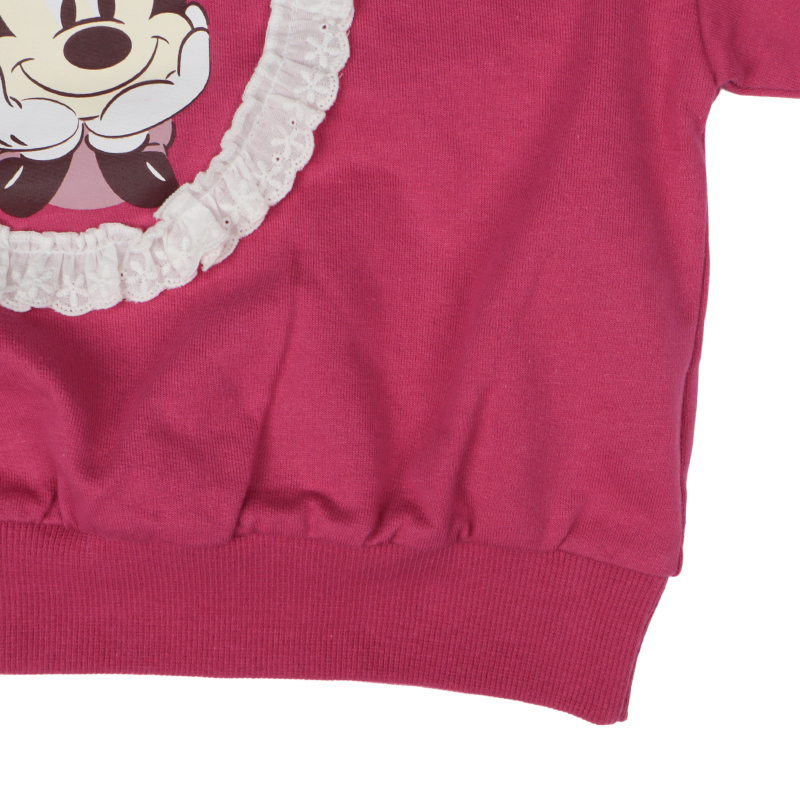 <商品サイズ> 100(身丈39・身幅39・肩幅39・袖丈27.5・裾幅30) 110(身丈42・身幅41・肩幅41・袖丈31・裾幅32) 120(身丈45・身幅43・肩幅43・袖丈34.5・裾幅34) <素材> 本体 綿100% リブ部分 綿95%ポリウレタン5% レース部分 綿100%