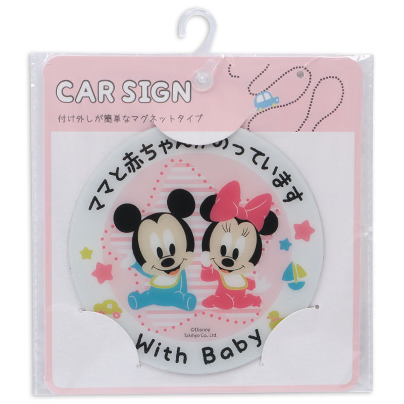 マグネットタイプのカーサインです。 仲良しのミッキーミニーが可愛く後方車両へママと赤ちゃんのことをお知らせします。 自家用車だけでなく、レンタカーやシェアカーにもお使い頂けます。