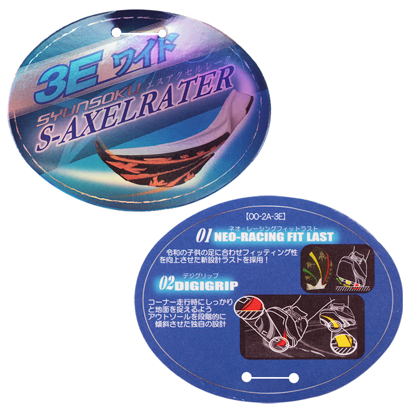 体が傾いてしまうコーナー走行時でも地面を確実にとらえるために、アウトソールを段階的に傾斜させた独自の設計「デジグリップ」と令和の子供の足(甲薄、幅広、かかとが小さめの傾向)に合わせフィッティング性を向上させた「ネオレーシングフィットラスト」を採用。運動会はもちろん、体育やクラブ活動、普段の通学でも活躍する1足です。
