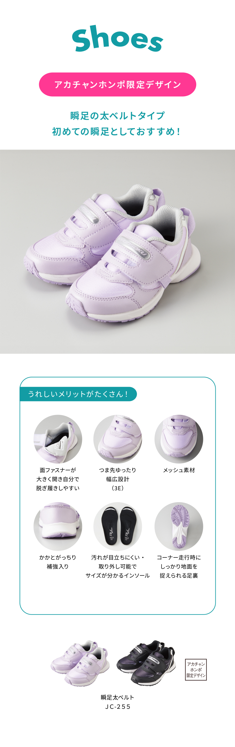 靴のサイズ:16.0cm 靴幅:3E アッパー素材:ポリエステル/合皮 ソール素材:EVA+ラバー