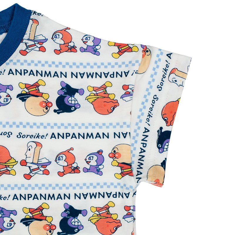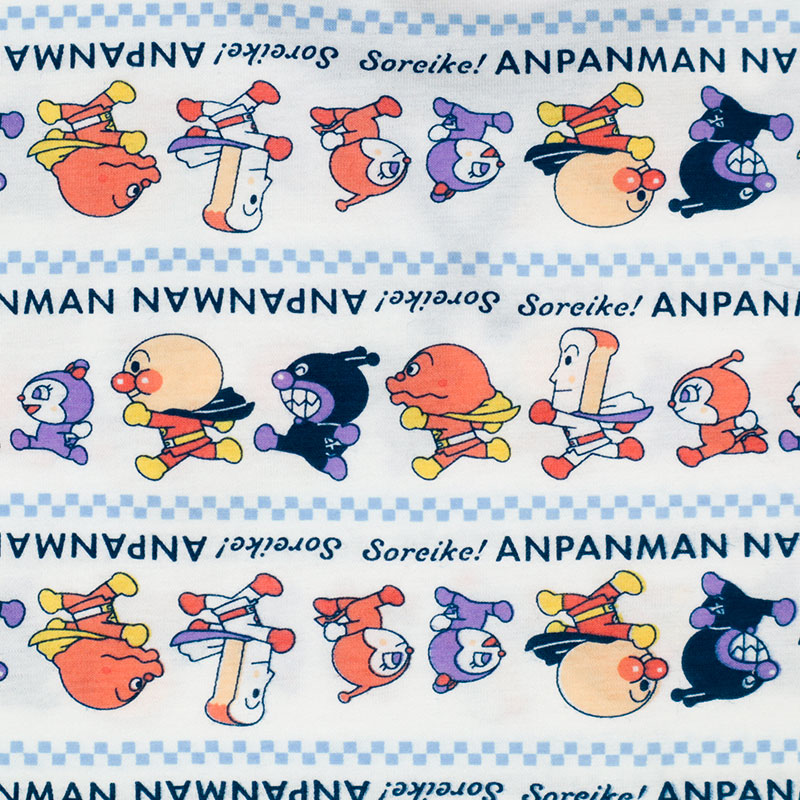 ●素材=綿100% ●サイズ(約・cm)= [80](トップス)着丈33 背肩巾34 身巾32 袖丈5 (パンツ)総丈38.5 前股上19 ウエスト上がり幅18 ウエスト伸び張り31.5 ヒップ幅32 [90](トップス)着丈36 背肩巾35 身巾33 袖丈5.5 (パンツ)総丈42 前股上19.5 ウエスト上がり幅19 ウエスト伸び張り32.5 ヒップ幅33 [95](トップス)着丈38 背肩巾36 身巾34 袖丈6 (パンツ)総丈44.5 前股上20 ウエスト上がり幅20 ウエスト伸び張り33.5 ヒップ幅34 [100](トップス)着丈40 背肩巾37 身巾35 袖丈6.6 (パンツ)総丈49 前股上20.5 ウエスト上がり幅21 ウエスト伸び張り34.5 ヒップ幅35 ●洗濯表示=洗濯可 ●原産国=中国製 (C)やなせたかし/フレーベル館・TMS・NTV