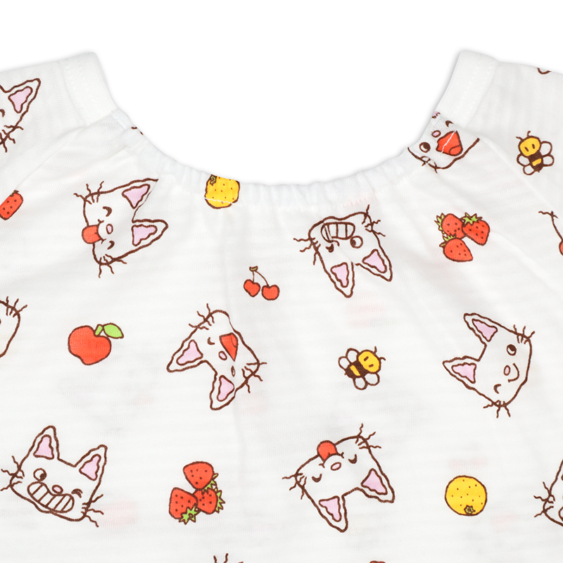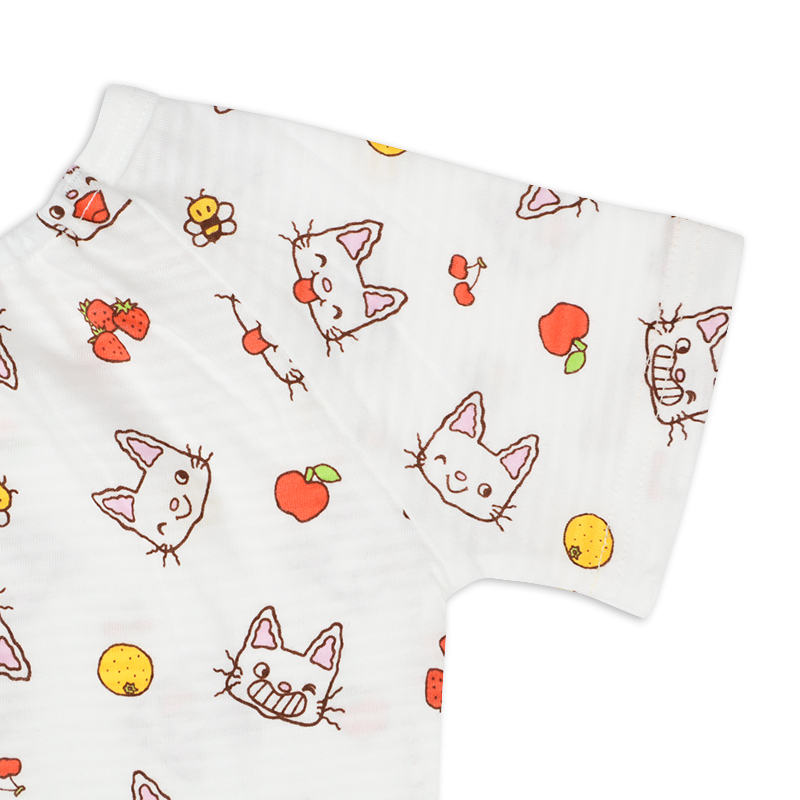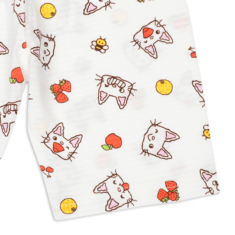 ●素材=[本体]綿100% [腹巻部分]綿93% ナイロン5% ポリウレタン2% ●サイズ(約・cm)= [80](トップス)着丈37 桁丈20.5 身幅33 (ズボン)ズボン丈27 股上17.5 腹巻幅16 ヒップ幅30.5 [90](トップス)着丈40 桁丈22.5 身幅34 (ズボン)ズボン丈31 股上18.5 腹巻幅16 ヒップ幅32 [95](トップス)着丈42 桁丈23.5 身幅35 (ズボン)ズボン丈33.5 股上19.5 腹巻幅16 ヒップ幅32.5 ●洗濯表示=洗濯可 ●原産国=カンボジア製