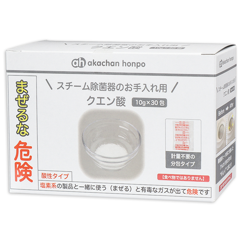 ◆ほ乳びん スチーム除菌&乾燥器 スチームメイト ●品番:HR-BS501 ●電源:AC100V 50/60Hz ●消費電力:除菌500W / 乾燥120W ●コード長さ:約1m ●本体寸法:幅191×奥行191×高さ370(mm) ●総重量:約1260g ◆スチーム除菌のお手入れ用 クエン酸 ●クエン酸10g分封×30包 ●成分:クエン酸 ●液性:酸性