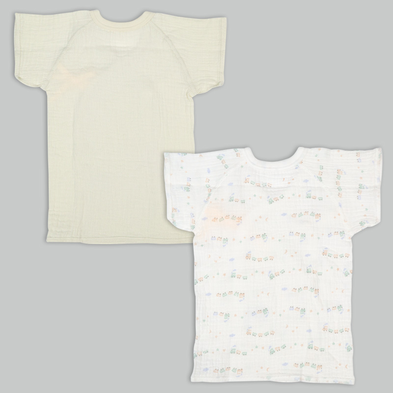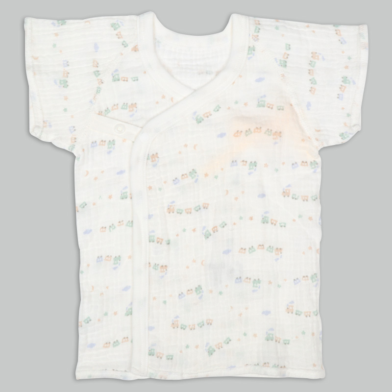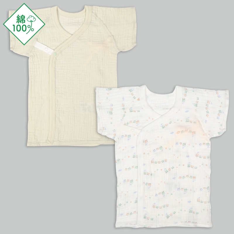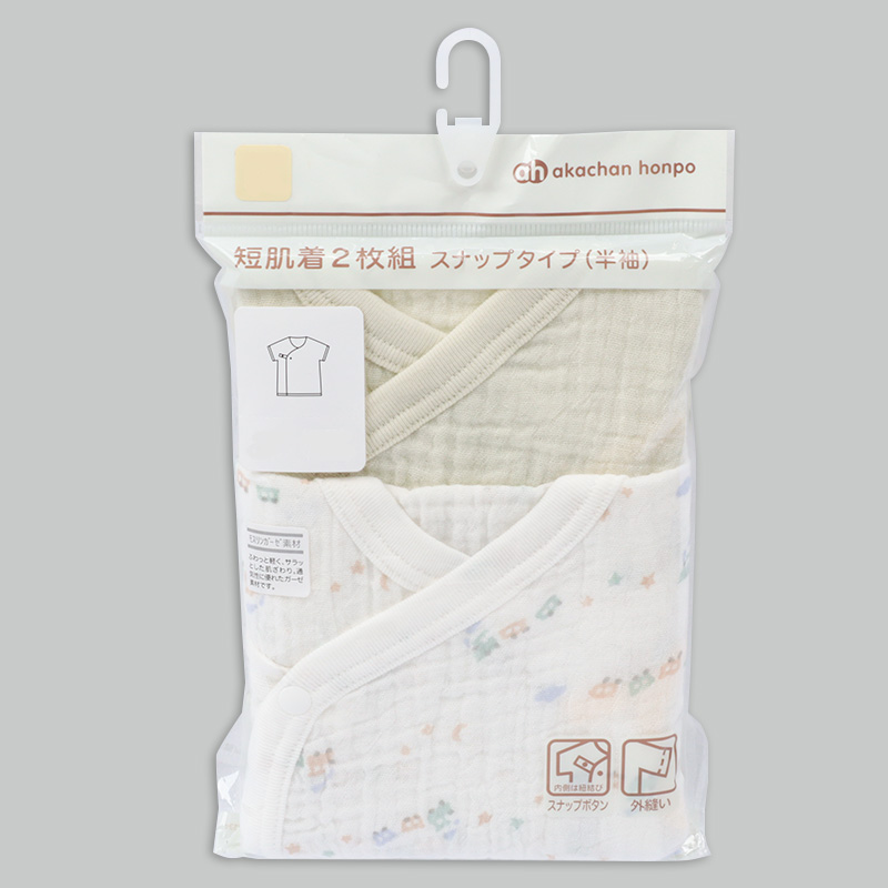 短肌着 半袖 ・対象サイズ=50 ・身巾23.0cm、身丈35.0cm、裾巾23.0cm、袖口巾10.0cm、上腕11.5cm、裄丈16.5cm、天巾7.5cm、前下り6.5cm、後下り1.5cm ・パッケージサイズ=H212 W145 ・素材=綿100% ・洗濯表示=洗濯可 ・原産国=中国