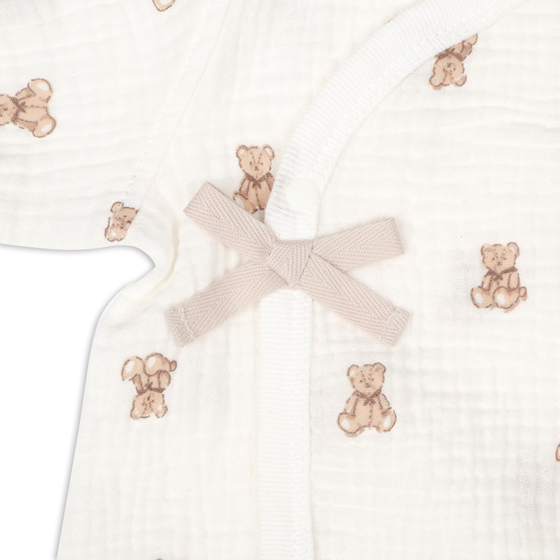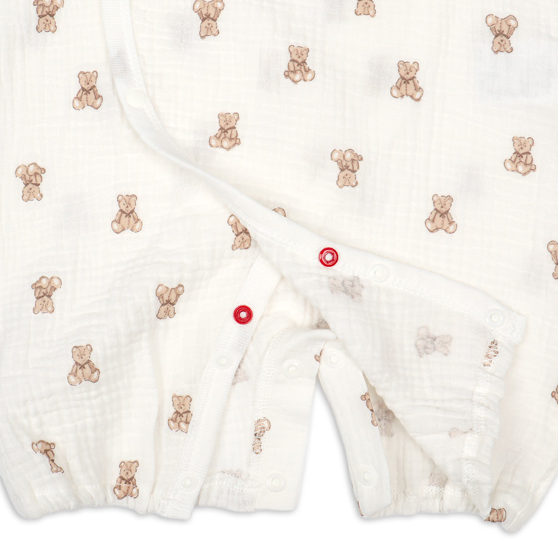 新生児夏向け、モスリンガーゼ素材のドレスオールです。