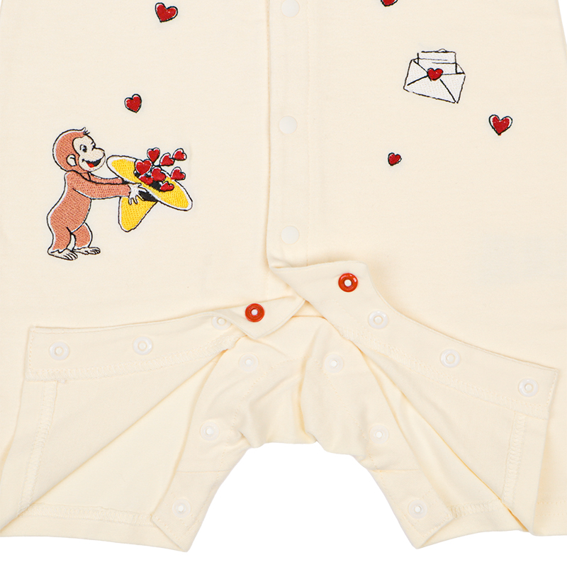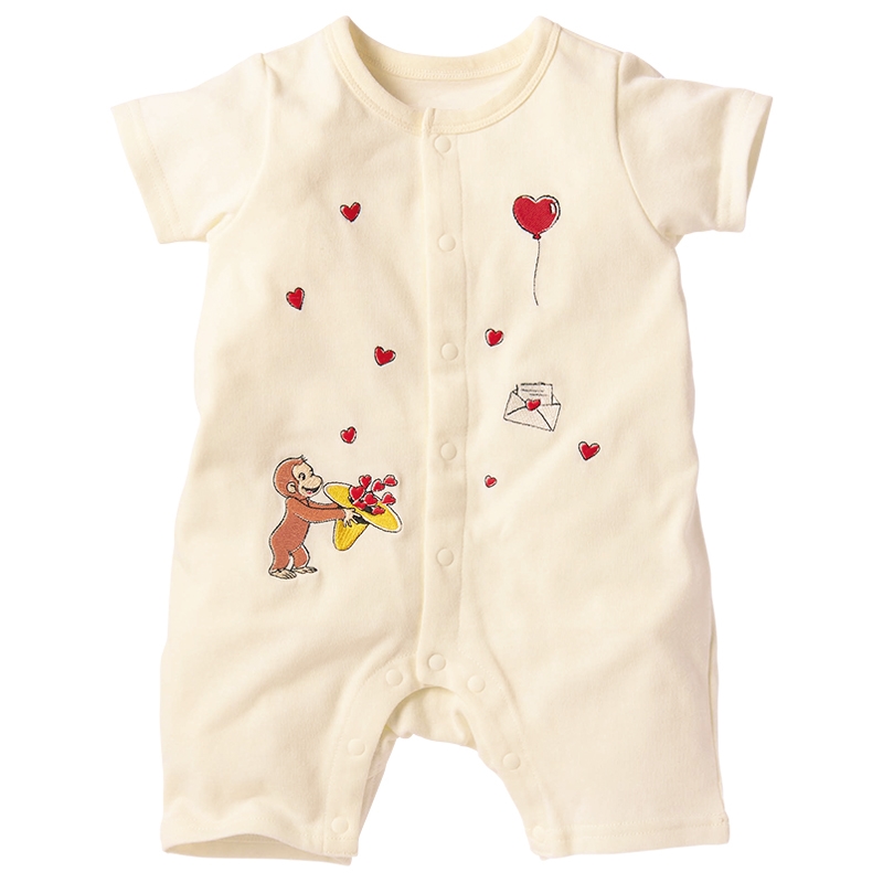 ●素材=綿100% ●サイズ(約・cm)= [60]総丈43 股上36 股下7 背肩幅19 身幅26 ヒップ幅32 袖丈8.5 [70]総丈47 股上38 股下9 背肩幅20 身幅27 ヒップ幅33 袖丈9 [80]総丈52 股上41 股下11 背肩幅21 身幅28 ヒップ幅34 袖丈9.5 ●洗濯表示=洗濯可 ●原産国=中国製