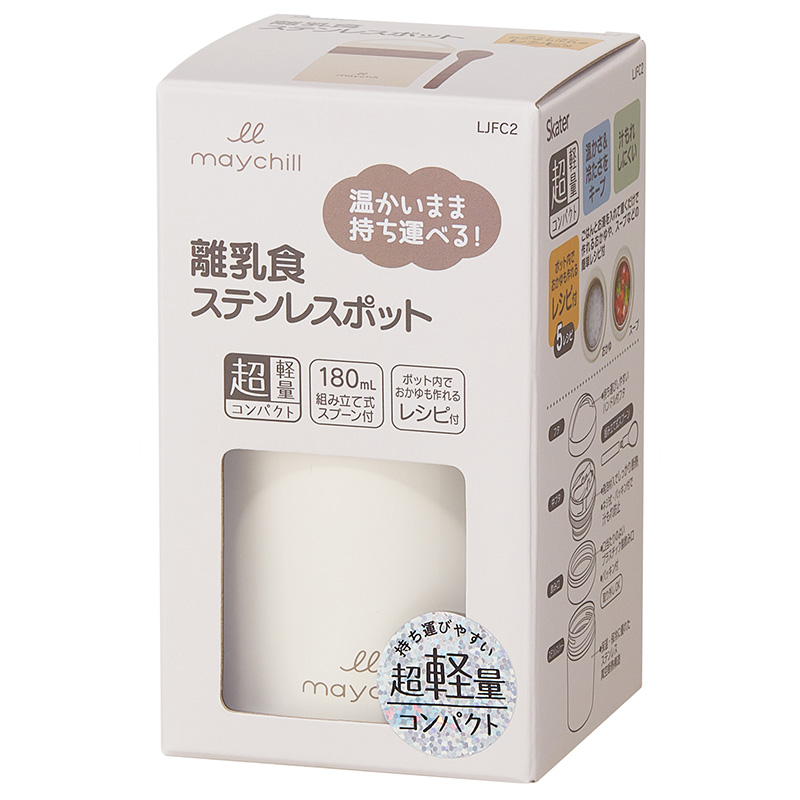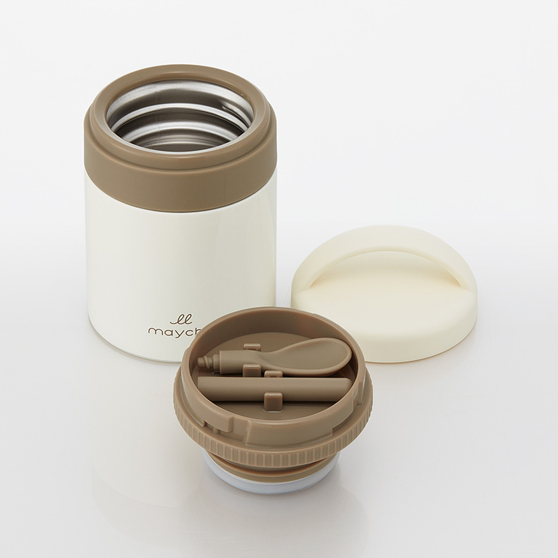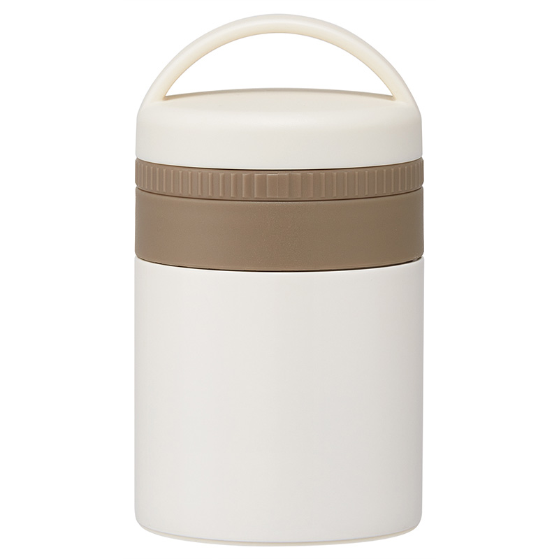 ●本体:ステンレス鋼(アクリル樹脂塗装) ●フタ:ポリプロピレン ●中フタパッキン:シリコーンゴム ●中ブタ:ポリプロピレン(中材:発泡スチロール) ●組み立て式スプーン:ポリプロピレン ●飲み口:ポリプロピレン ●飲み口パッキン:シリコーンゴム ●底板:熱可塑性エラストマー ●商品サイズ 高さ:約130mm(取っ手を含む)、直径:約75mm ●保温効力:53度以上(6時間)・保冷効力:12度以下(6時間)