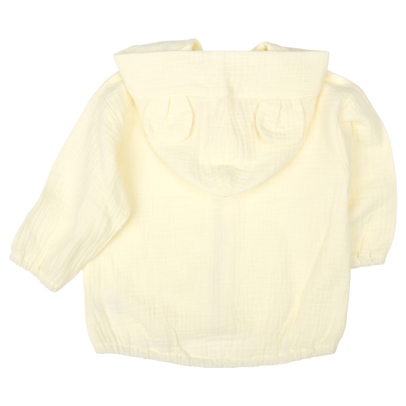 赤ちゃん本舗オリジナルデザインのUVパーカーです。 やわらかい綿100%のモスリンガーゼ素材を使用しています。 フード部分のくま耳と胸のくまワッペンがかわいいポイントです。 UV機能つきでおでかけにも便利なアイテムです。