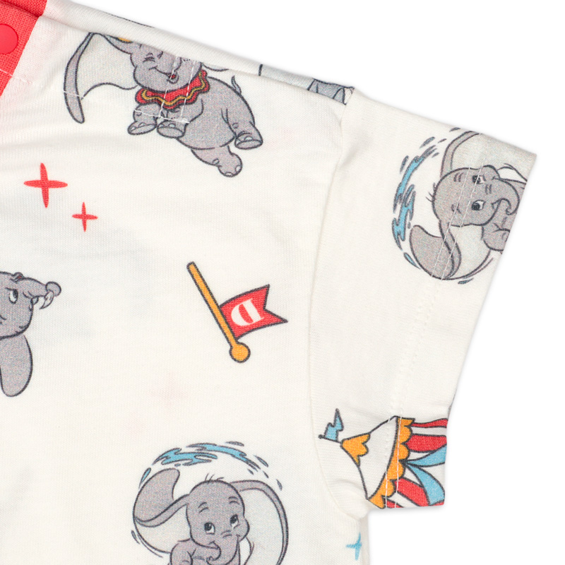 赤ちゃん本舗オリジナルデザインの半袖ロンパースです。ダンボのポップでかわいい世界観がつまったアイテムです。キュートな総柄にワッペンデザインがポイントです。本体は綿100%の天竺素材を使用しています。