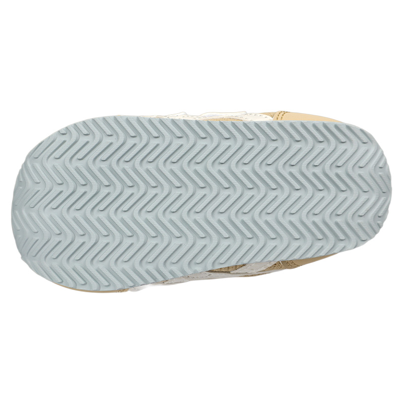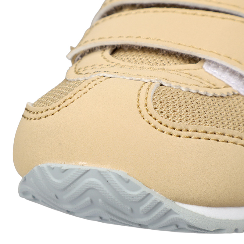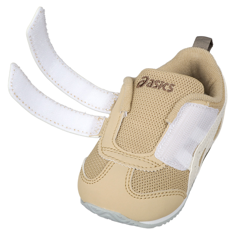 扇形のつま先部分は足ゆびをのびのびと動かすことができ、踏ん張りやすいのが特徴です。 かかとの安定性を重視し、かかとを包み込む立体的なインナーソールを採用。 フィット感の調節がしやすい2本ベルトで、脱ぎ履きがしやすくなっています。