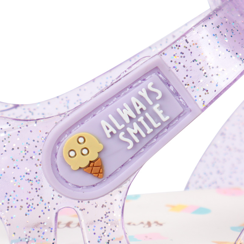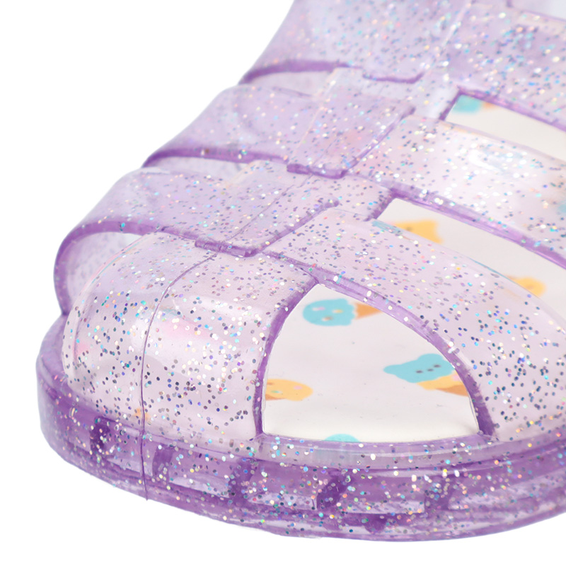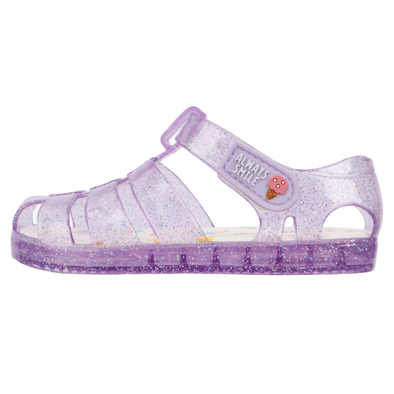 *面ファスナータイプで履かせやすい *大人でも人気なスタイル *アウトドアやスポーツやお出かけと汎用性が高いサンダル *透明感がある素材で清涼感を演出 *ラメ入りで高級感があります *中底内側にもプリントがあしらわれています