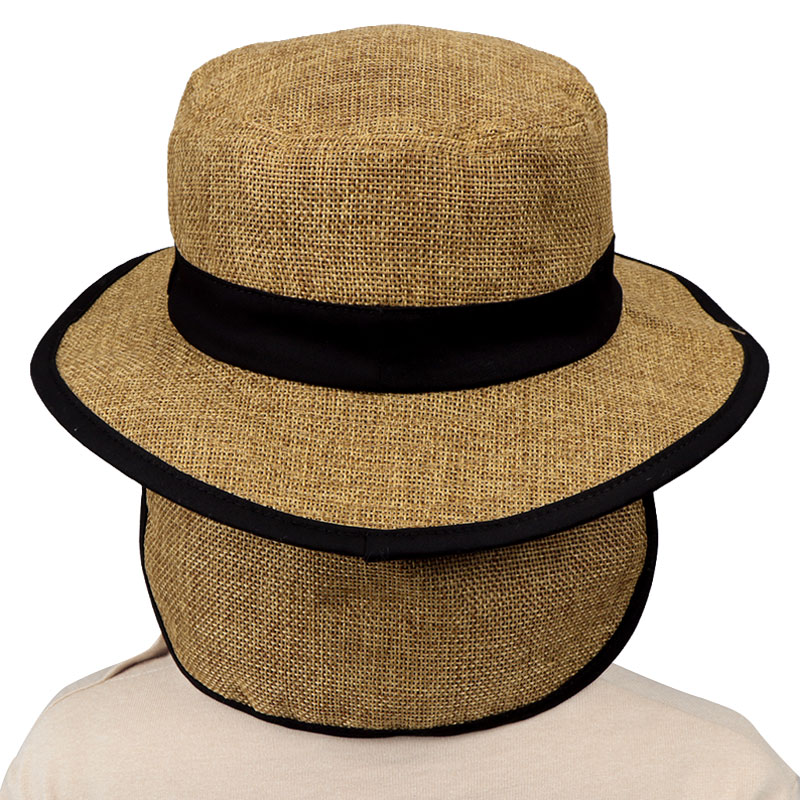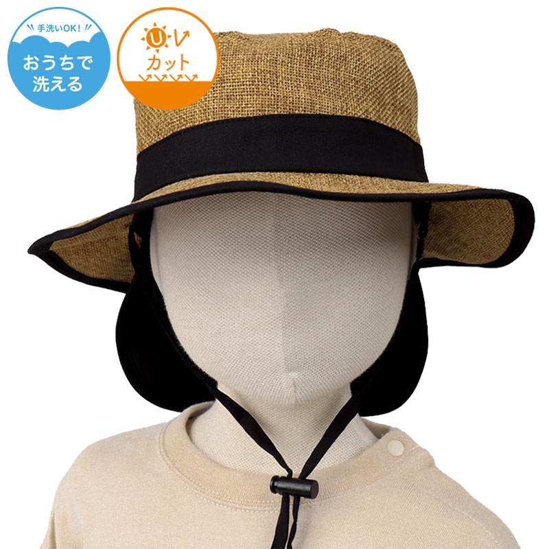 [48~54cm]サファリハット 日よけ付き 洗える夏素材 ブラウン