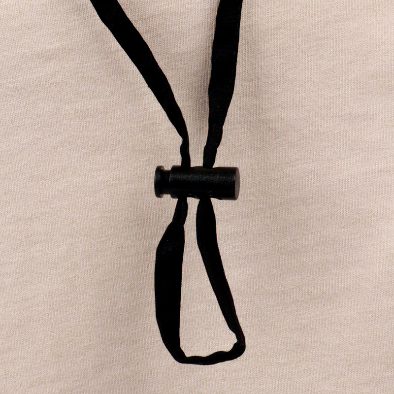 風などによる帽子の落下を防ぐ首紐付き。