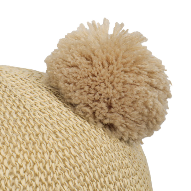 丸みのある可愛らしいフォルムが特徴のアニマルモチーフアイテムです。 ボンボン耳がチャームポイントです。 ペーパーサーモ糸の編み地により、透け感のある爽やかな仕上がりに。 サイドは合皮ネームが飾り、こなれた印象をプラスします。 風などによる帽子の落下を防ぐアゴゴム付き。 アゴゴムは生地でくるんだ仕様なので肌あたりが優しいです。