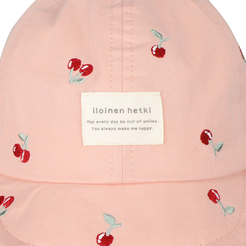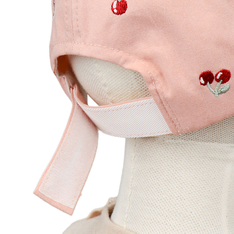 チェリー柄が映える、おしゃれな総柄刺繍のアイテムです。 刺繍がアクセントになり、コーディネートで活躍できます。 フロントはプリントネームが飾り、こなれた印象をプラスします。 後ろ部分はベルトの面ファスナーにより、サイズ調節が行えます。 風などによる帽子の落下を防ぐアゴゴム付き。