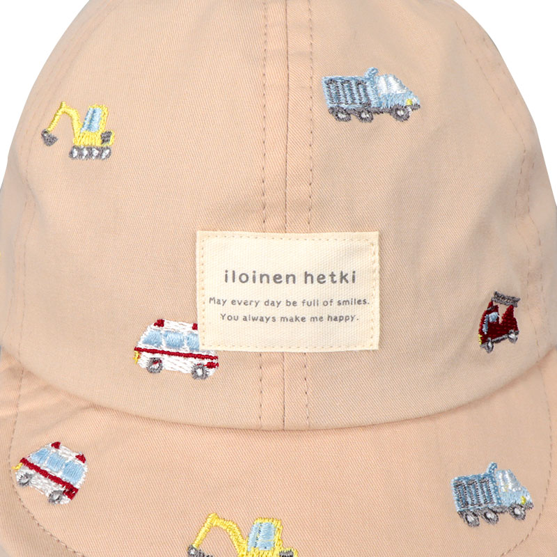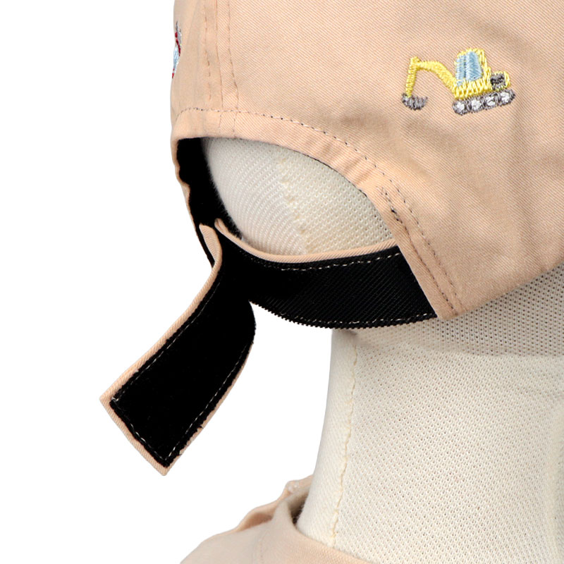はたらくくるま柄が映える、おしゃれな総柄刺繍のアイテムです。 刺繍がアクセントになり、コーディネートで活躍できます。 フロントはプリントネームが飾り、こなれた印象をプラスします。 後ろ部分はベルトの面ファスナーにより、サイズ調節が行えます。 風などによる帽子の落下を防ぐアゴゴム付き。